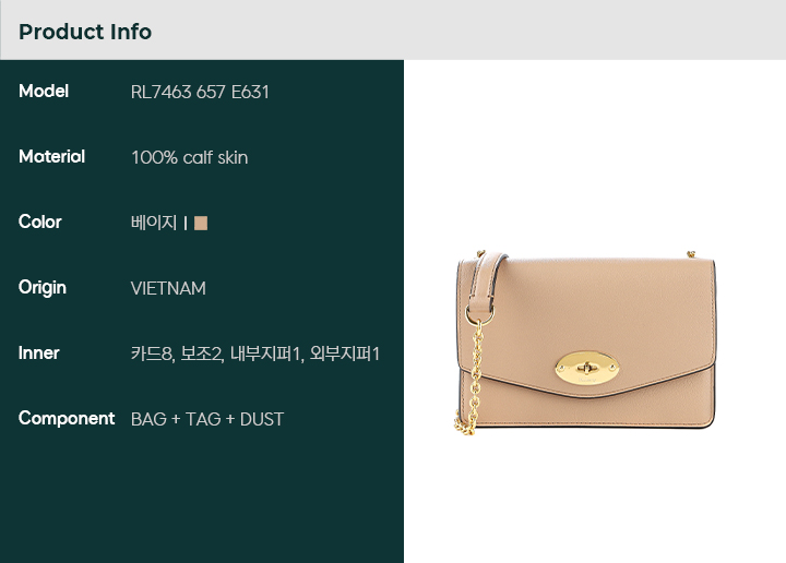 (현대Hmall)멀버리 (RL7463 657 E631) 여성 스몰 달리 체인 크로스백
