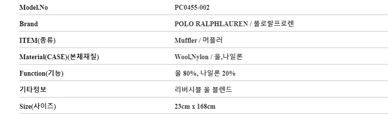 폴로랄프로렌 POLO RALPHLAUREN PC0455-002 머플러