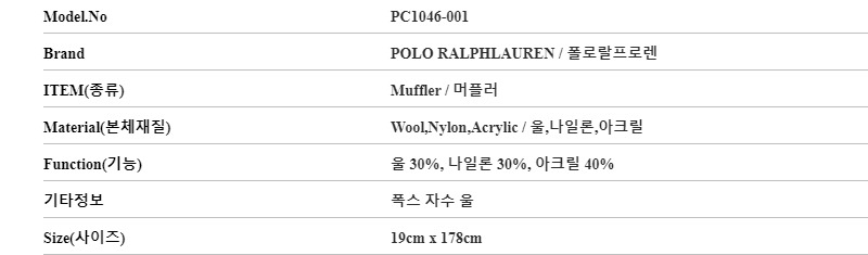 폴로랄프로렌 남녀공용 Fox 폭스 목도리 머플러(PC1046 001)