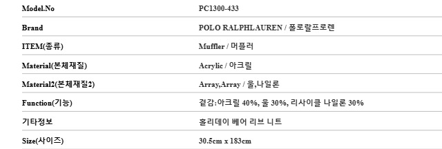 폴로랄프로렌 남녀공용 홀리데이 베어 니트 목도리 머플러(PC1300 433)