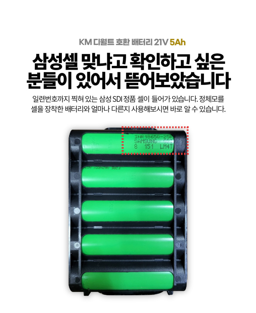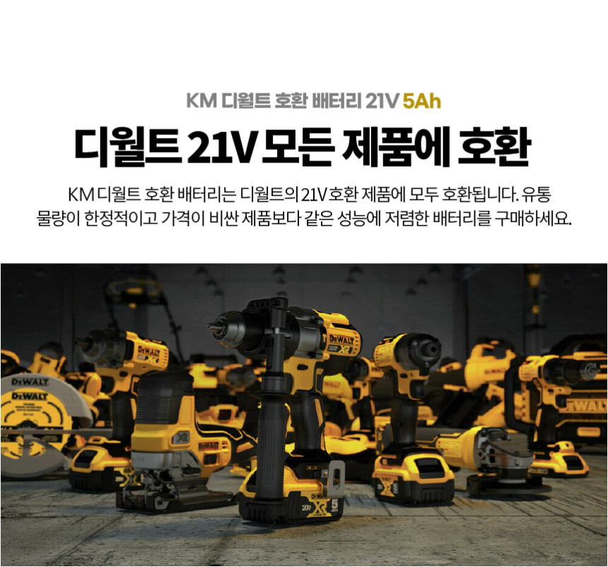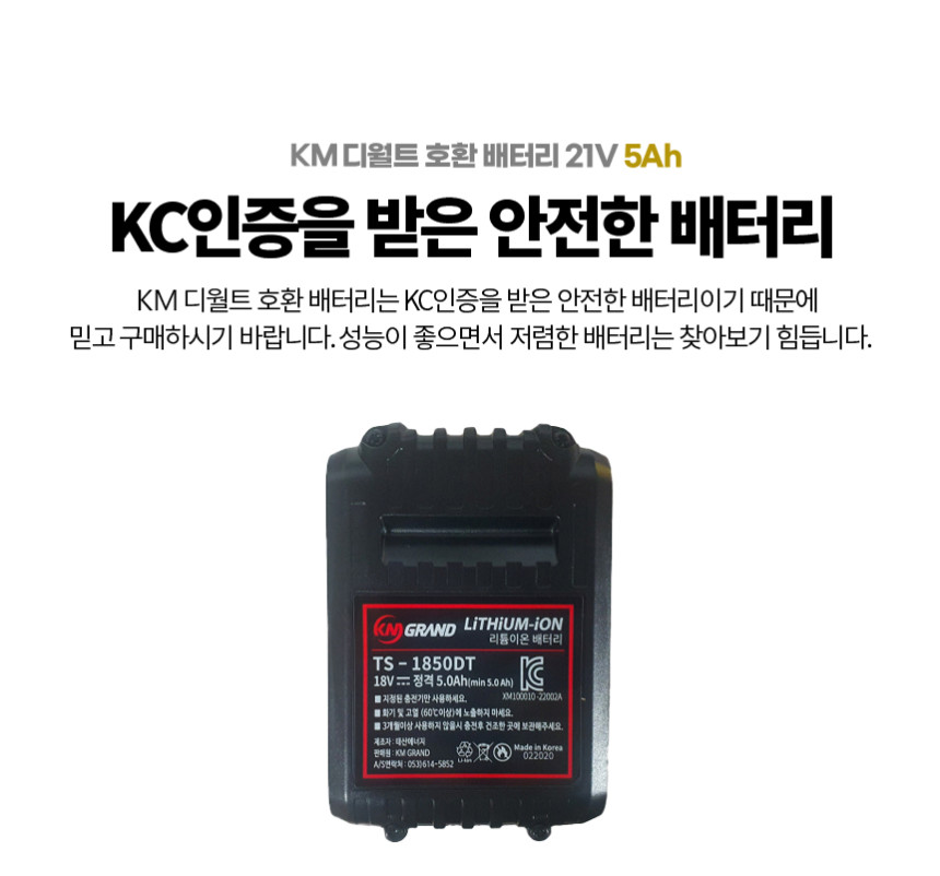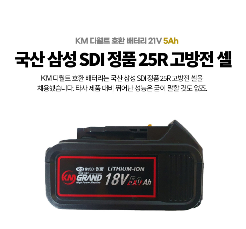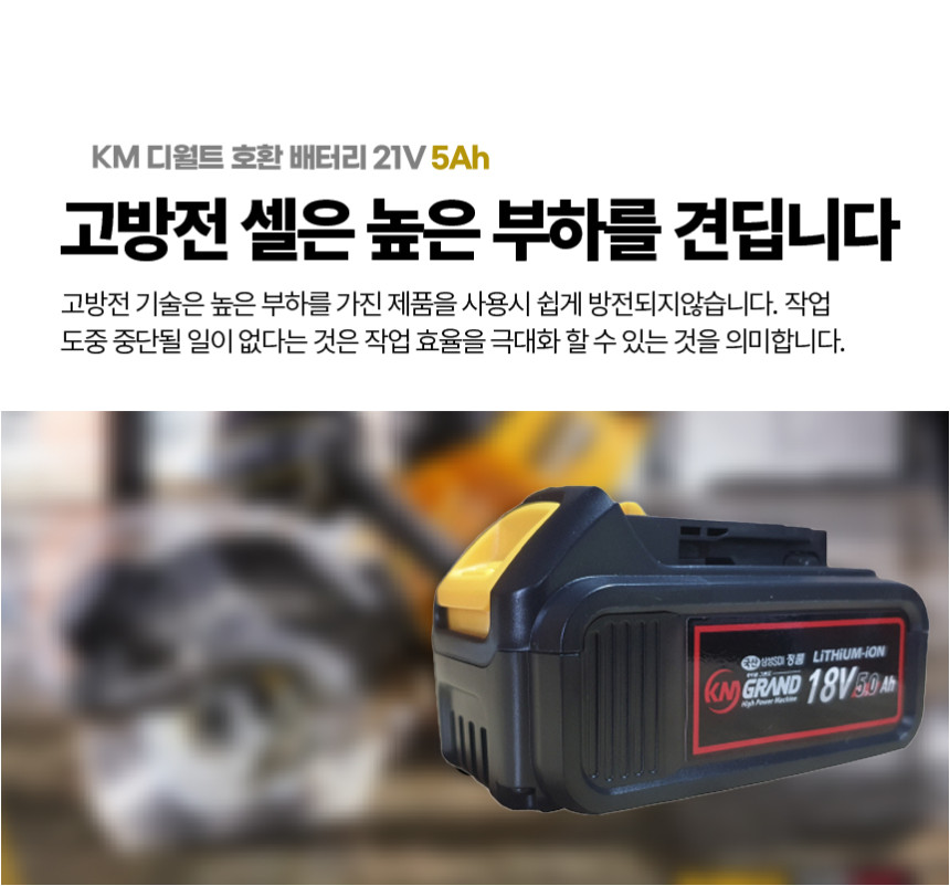 KM그랜드 디월트 호환 배터리 21V 5.0Ah 삼성셀 TS-1850DT