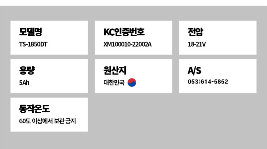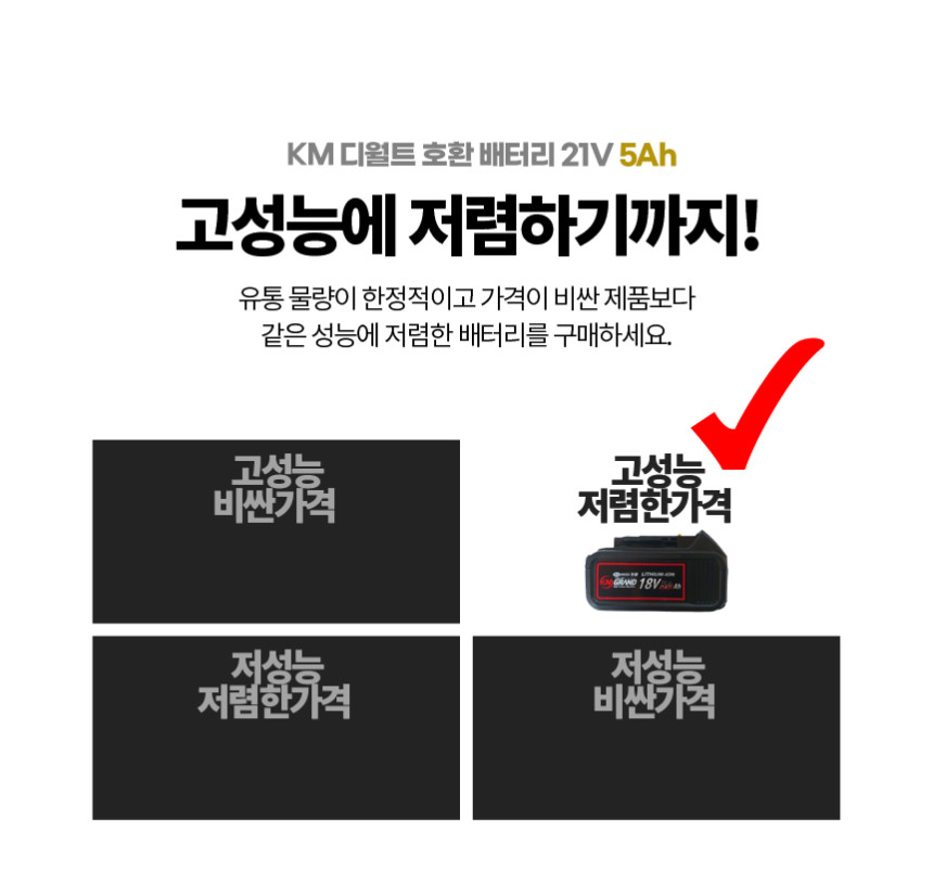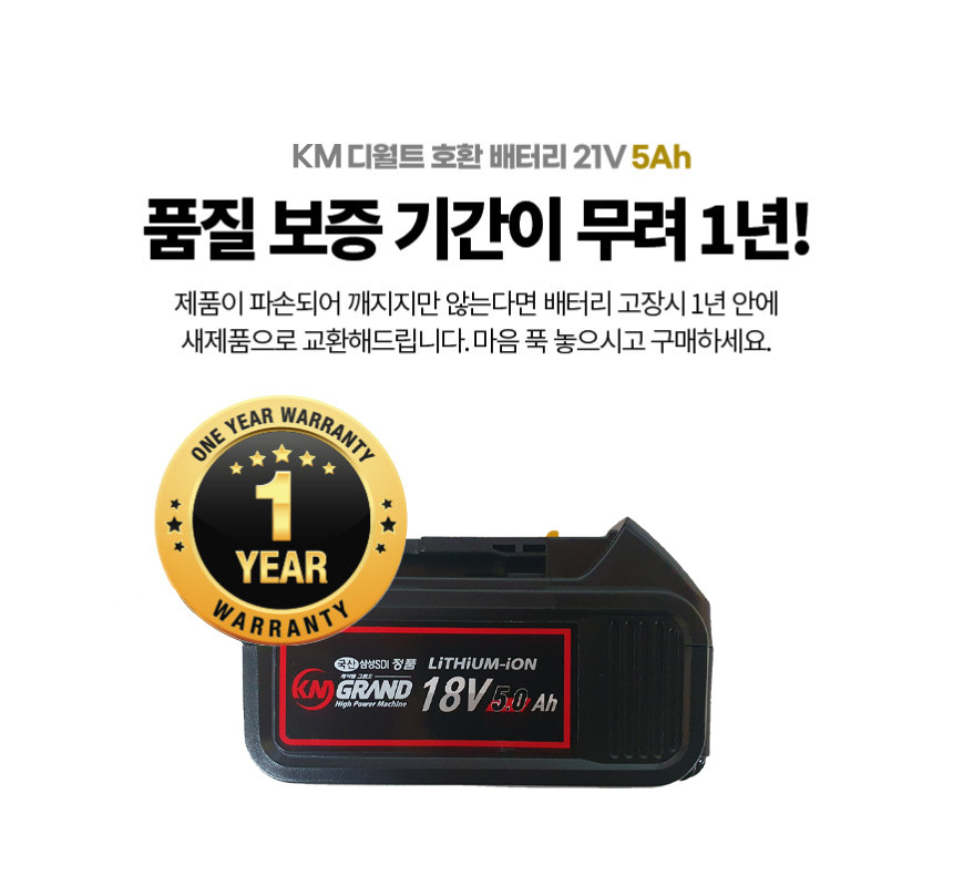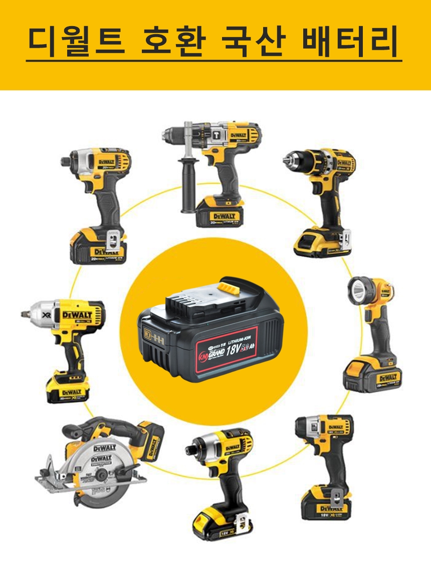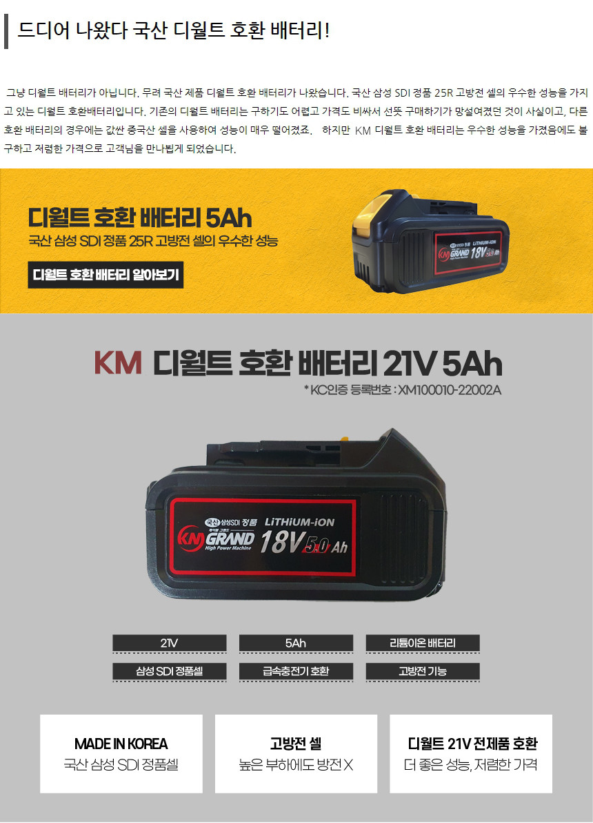 KM그랜드 디월트 호환 배터리 21V 5.0Ah 삼성셀 TS-1850DT