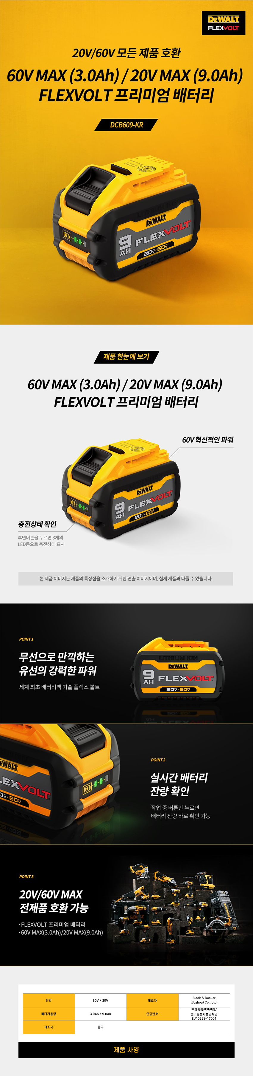 디월트 60V 리튬이온배터리 DCB609 3.0Ah 플렉스볼트 20V 9.0Ah호환 정품박스포장상품