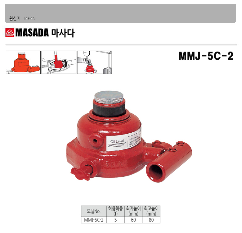 마사다 오일작기 MMJ-5C-2 5톤 미니 유압 오일 작기 자키 기중기 자동차 정비