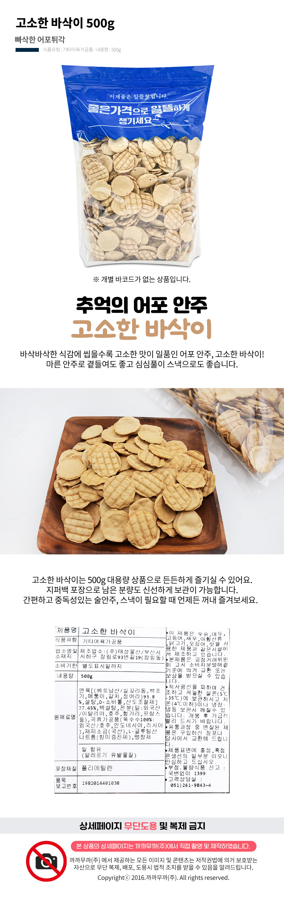 고소한 바삭이 500g (1박스-10개) 어포 마른안주 어포튀각 빠삭이