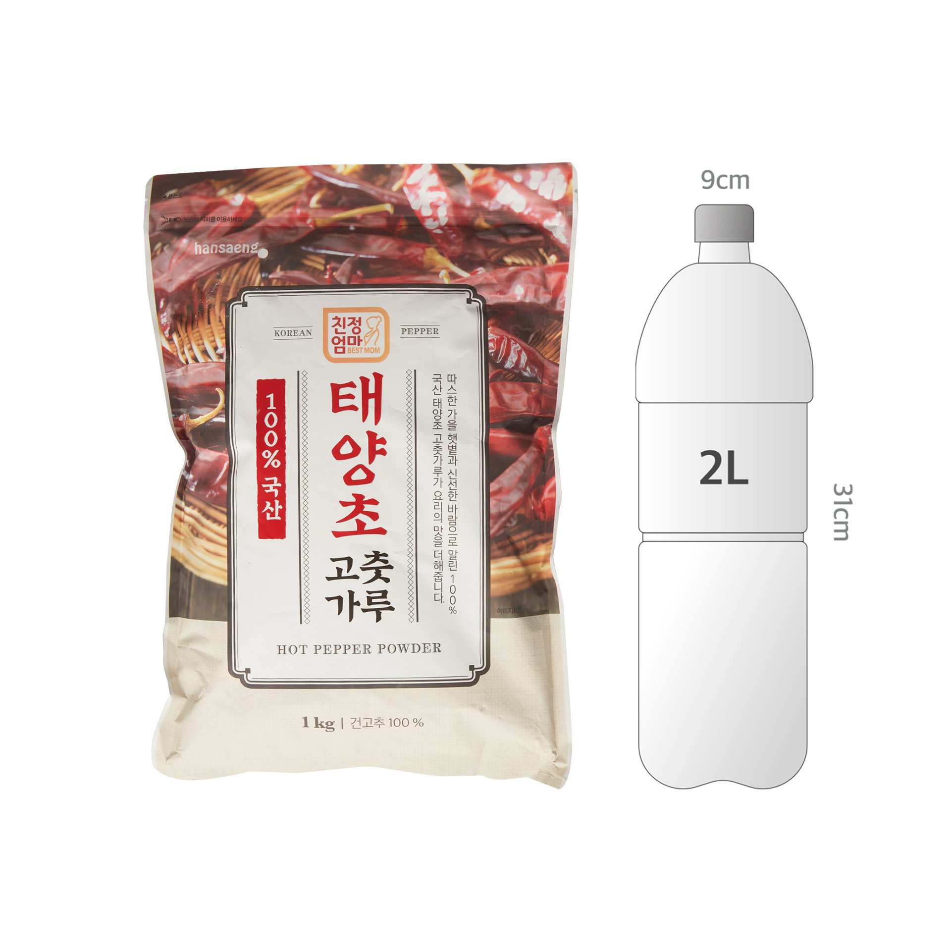 100% 국산 고추만을 엄선하여 햇살에 말린 친정엄마 태양초 고춧가루입니다. 무침, 국, 찜 등에 매콤한 풍미를 더해주는 고춧가루는 밥상에서 빼놓을 수 없는 식재료이죠. 인공적인 열을 가하지 않고 뜨거운 햇볕과 맑은 바람에 말려 고추 본연의 알싸한 매콤함이 일품이에요. 온 가족이 먹는 요리인 만큼 HACCP 인증을 받은 생산 시설에서 위생적인 공정을 거쳤답니다. 넉넉하게 담아냈으니, 매운맛이 필요할 때 언제나 친정엄마 태양초 고춧가루를 활용해 보세요.