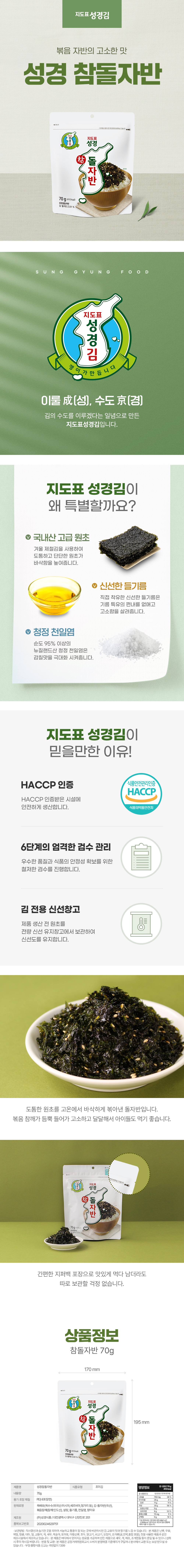 성경김본사 참돌자반70g 총 5봉