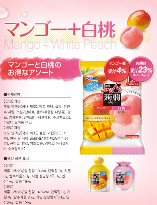 일본정품 오리히로 곤약젤리 망고복숭아 180개