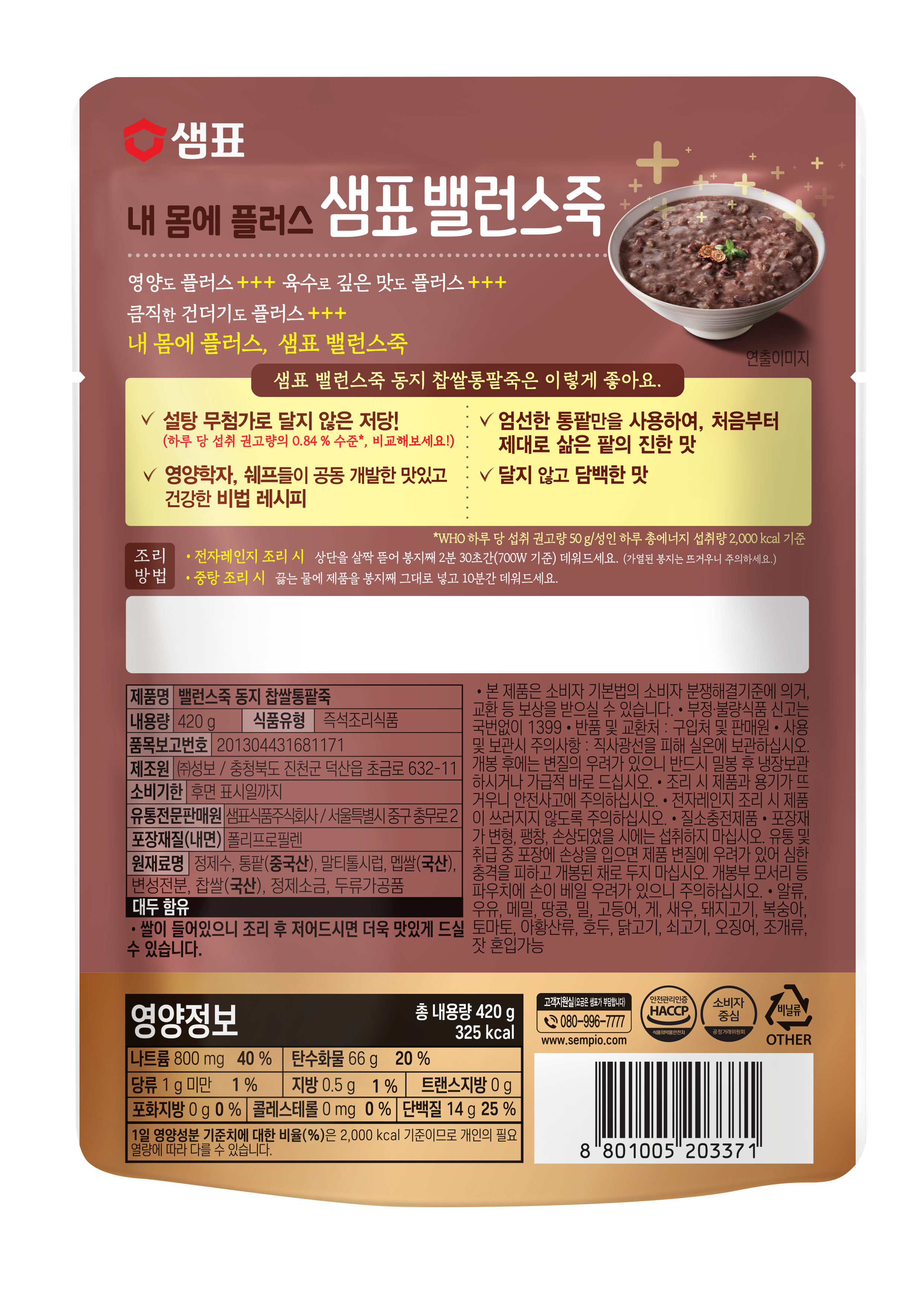 하프클럽/샘표 밸런스죽 동지 찹쌀 통팥죽 420g 6개 / 저당죽