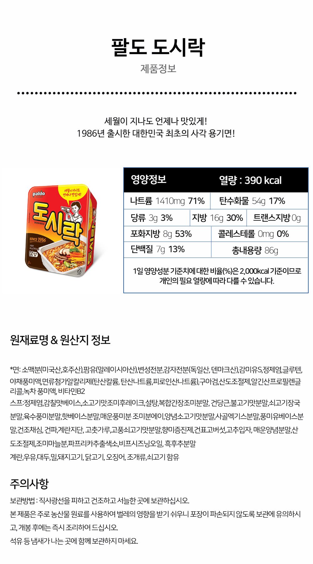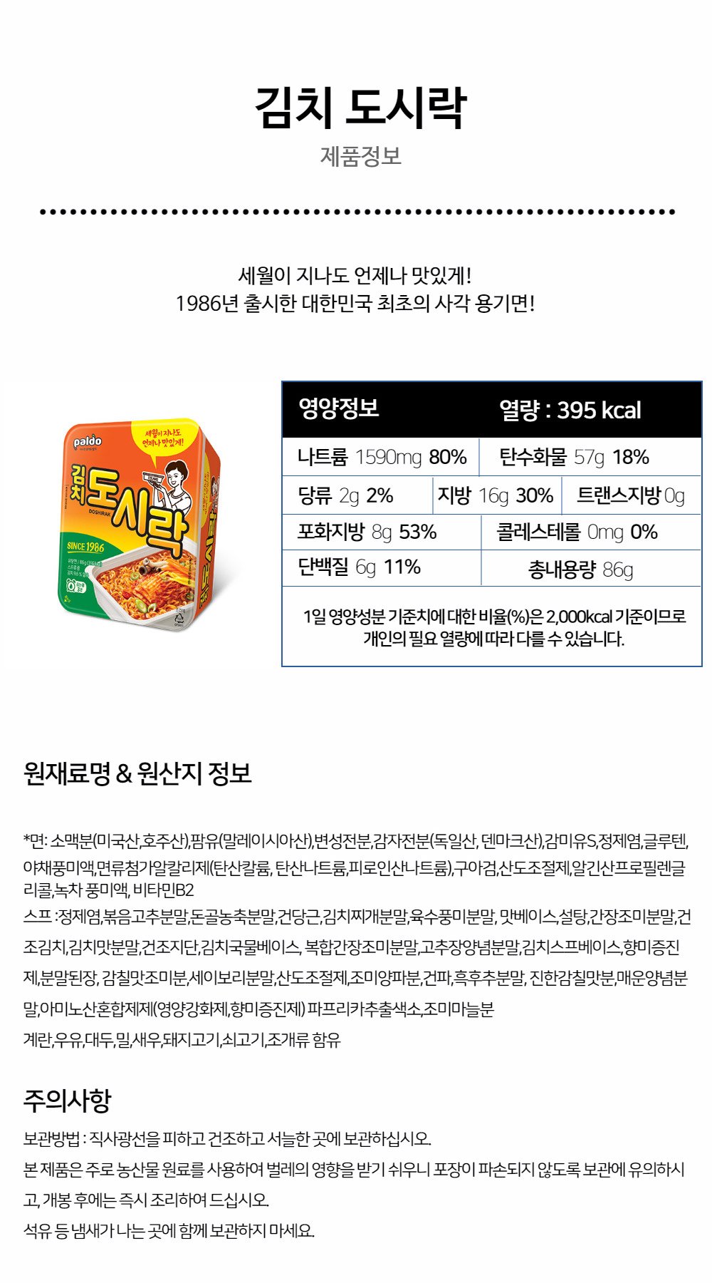 팔도 도시락 김치도시락 86g 24개 작은 컵라면