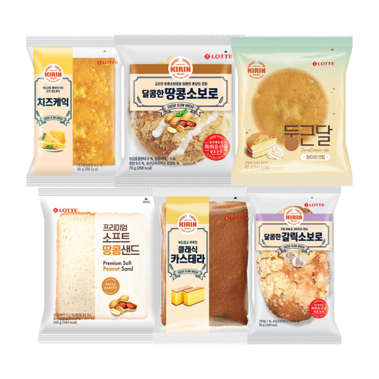 (롯데백화점)기린빵 6종 20봉 혼합구성(땅콩샌드카스테라치즈케익소보로2종크림빵)