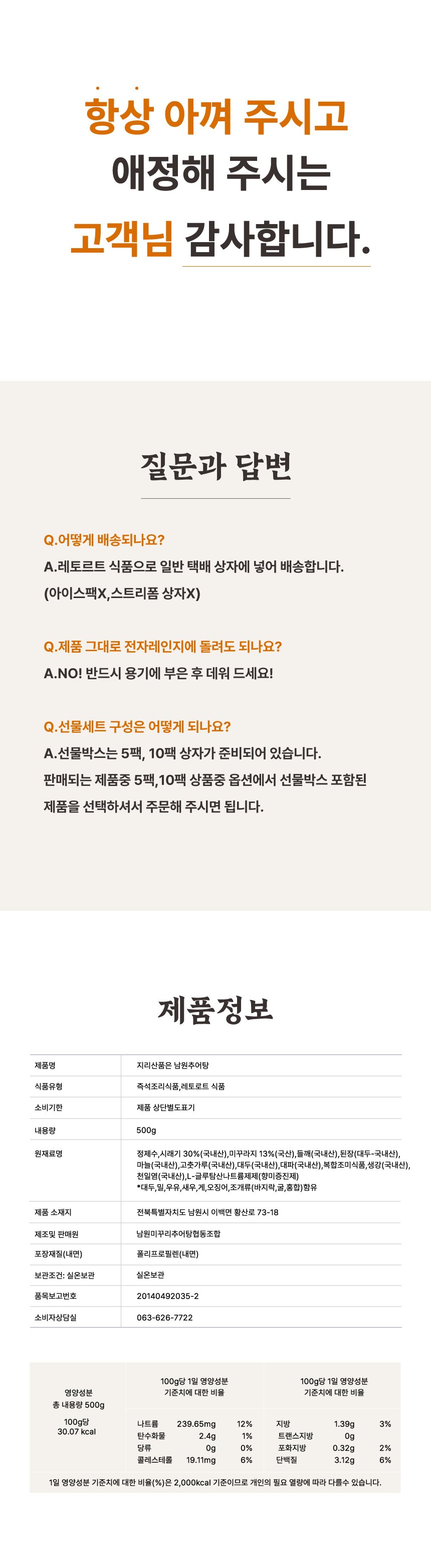 오늘출발 추어탕 보양식 지리산품은 남원추어탕 500g x 10팩