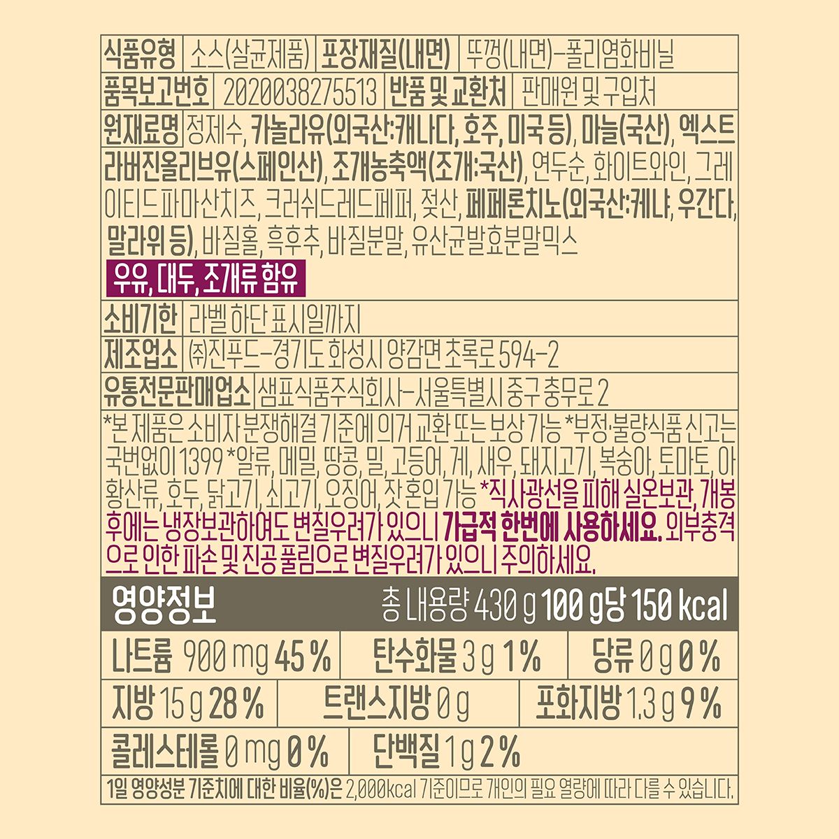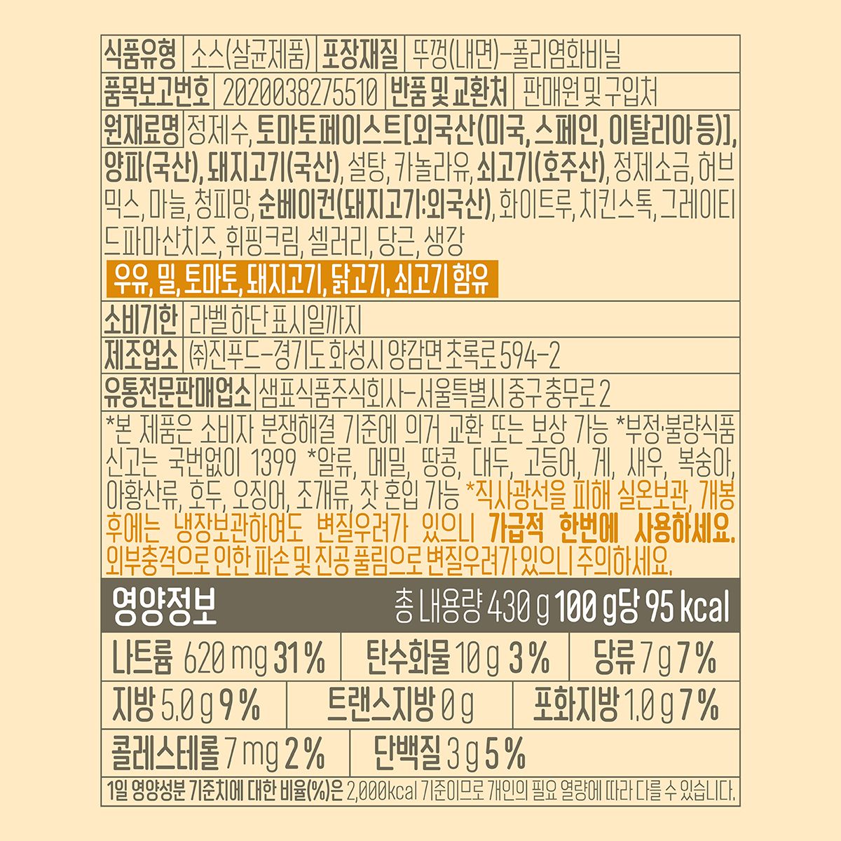 하프클럽/폰타나 오일미트 파스타소스 3병 +면500g 1봉 증정 / 봉골