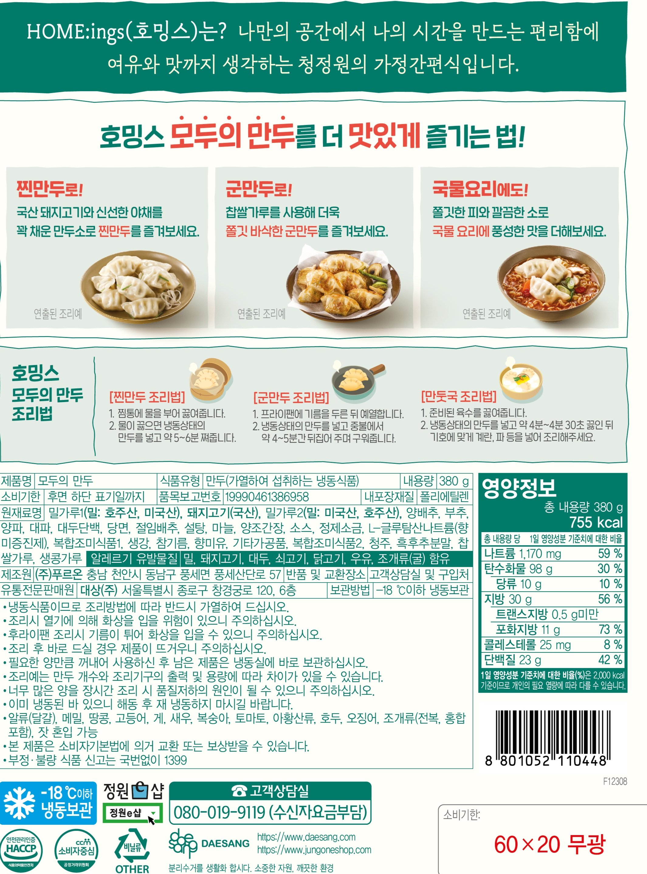 (신세계의정부점)청정원 호밍스모두의 만두 380gx4봉