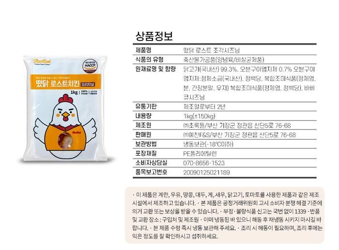 예찬FS 에어프라이어 치킨 떴닭 로스트 1kg+1kg 100%국내산