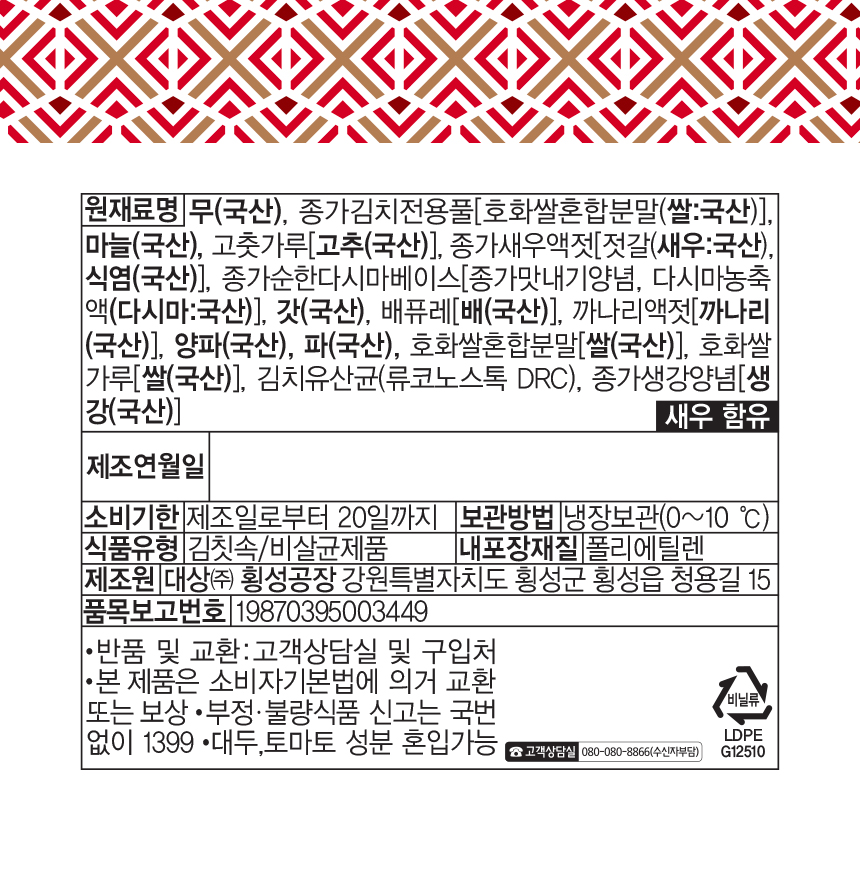 | 제조연월일/ 소비기한 또는 품질유지기한 | 상세페이지 참조 |