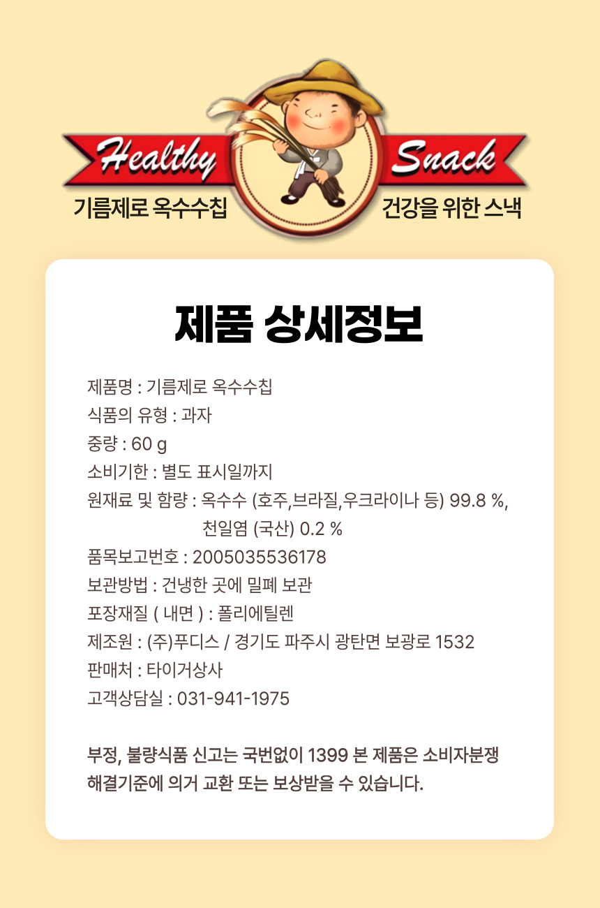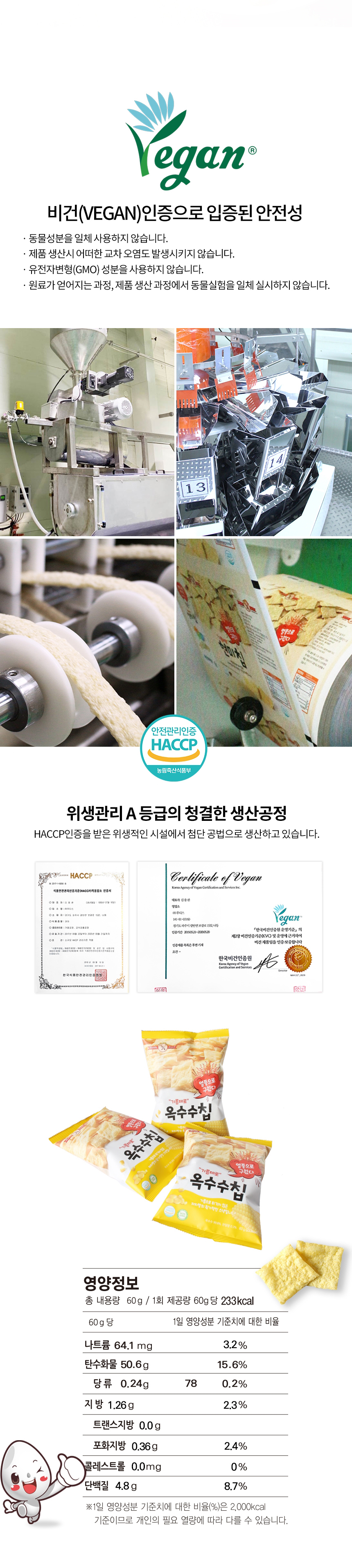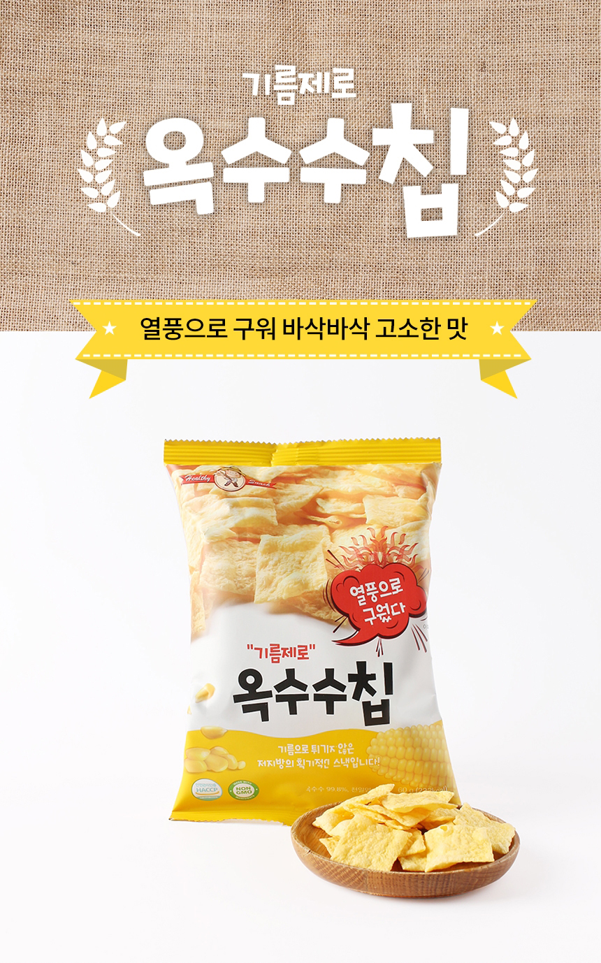 기름제로 옥수수칩 60g x 10개 튀기지않은 옥수수과자 구운콘칩 저칼로리 비건 무설탕 건강간식