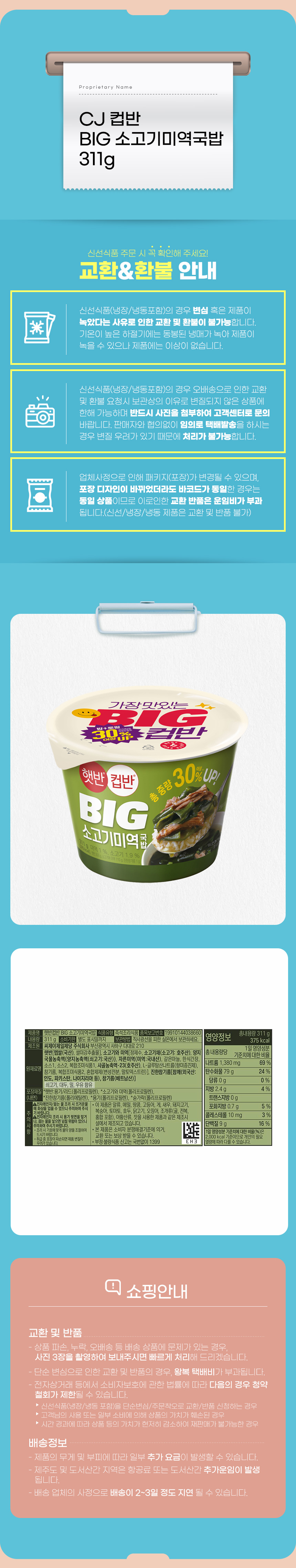 CJ 컵반 BIG 소고기미역국밥 311g x 4개