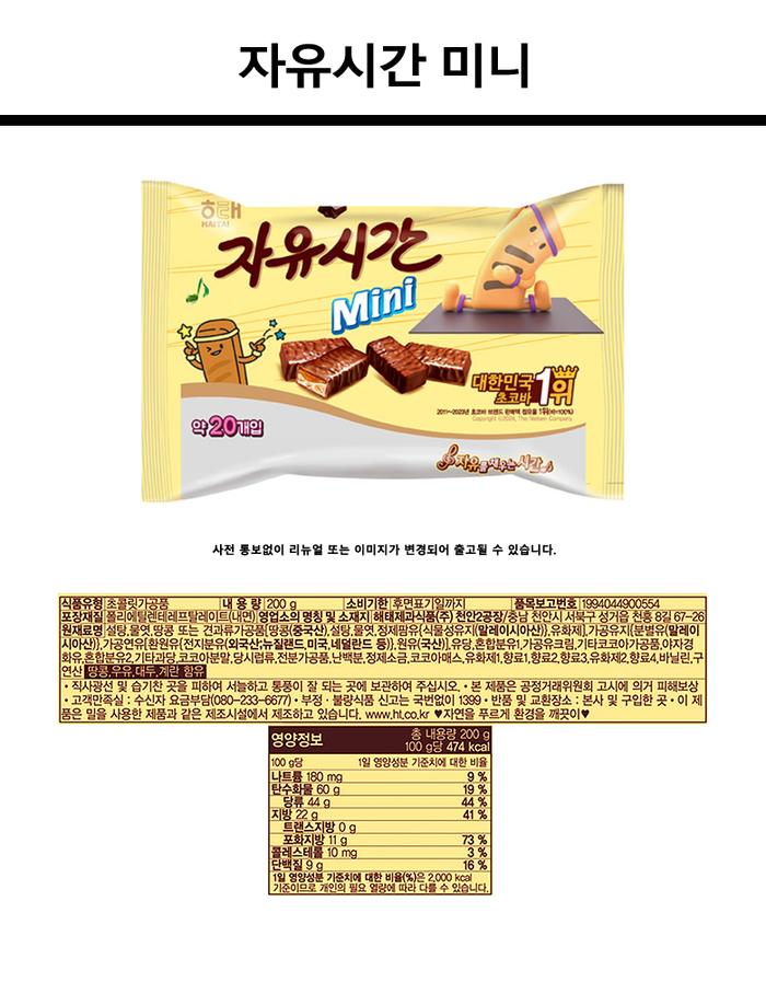 상품명[해태] 해태제과 자유시간 미니 200g 12개 / 12개