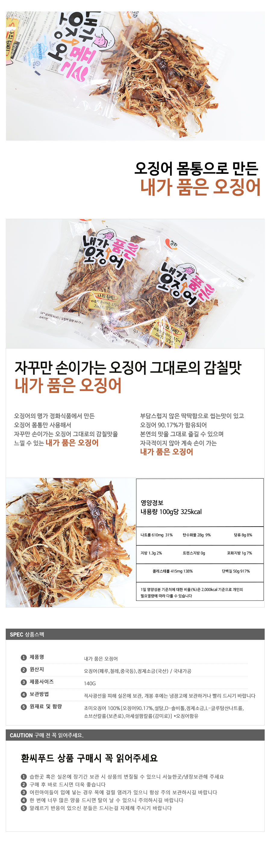 정화식품 내가 품은 오징어 140g 오징어몸통