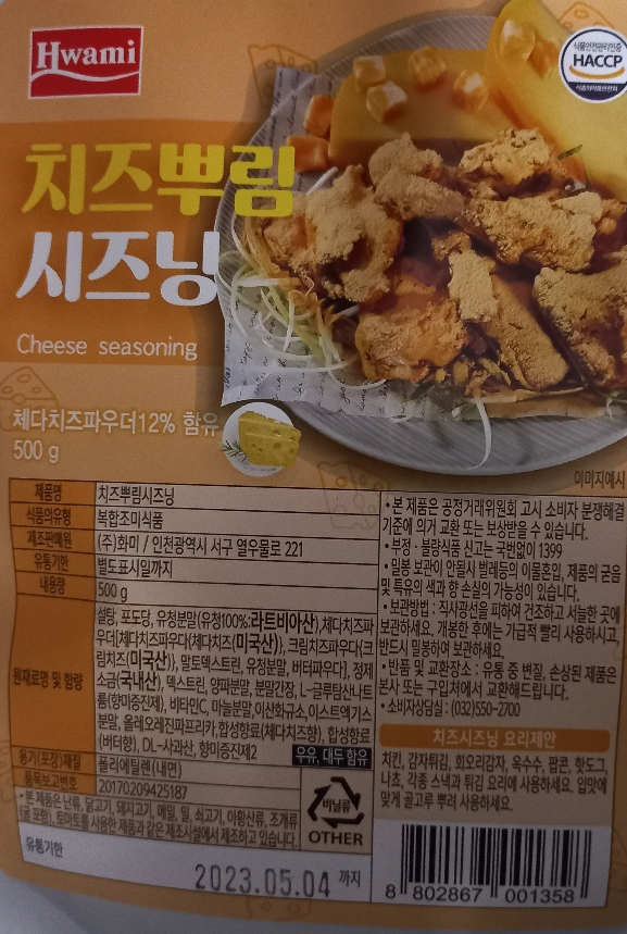 화미 치즈뿌림 시즈닝 500g[ Cheese seasoning ]· HACCP 안전관리인증· 미국산 체다치즈파우더 12%· 건냉소 보관