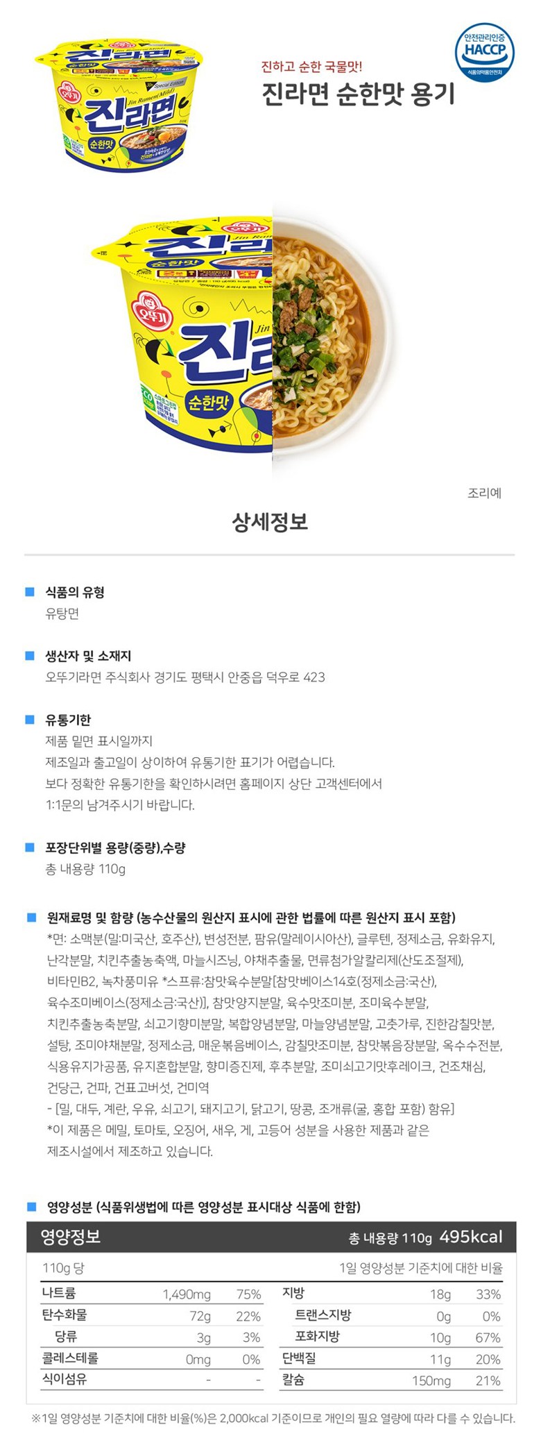 오뚜기 행사 진라면 순한맛 용기 큰컵 110g 24개
