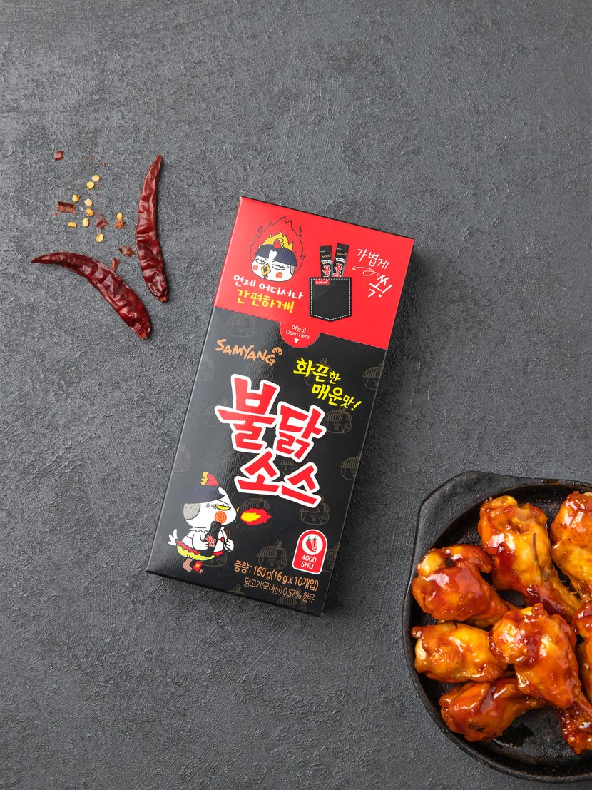 매콤하고 중독적인 불닭소스입니다. 스틱형 포장으로 캠핑이나 여행 같은 야외활동 시에도 간편하게 즐길 수 있어요. 좀 더 매콤하게 먹고 싶을 때 다양한 요리에 마음껏 뿌려드세요. 치킨이나 튀김과도 궁합이 잘 맞아 찍어 먹기 좋은 소스랍니다. 화끈한 매운맛은 스트레스를 사라지게 만들 거예요.