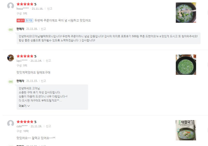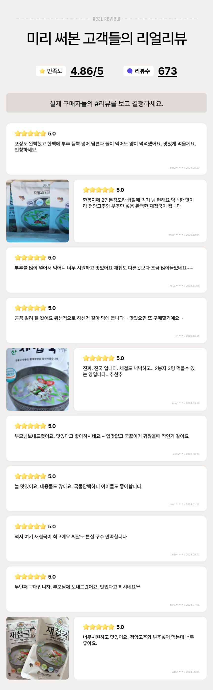 많은 고객님들이 인정해주신 국내산재첩국입니다.