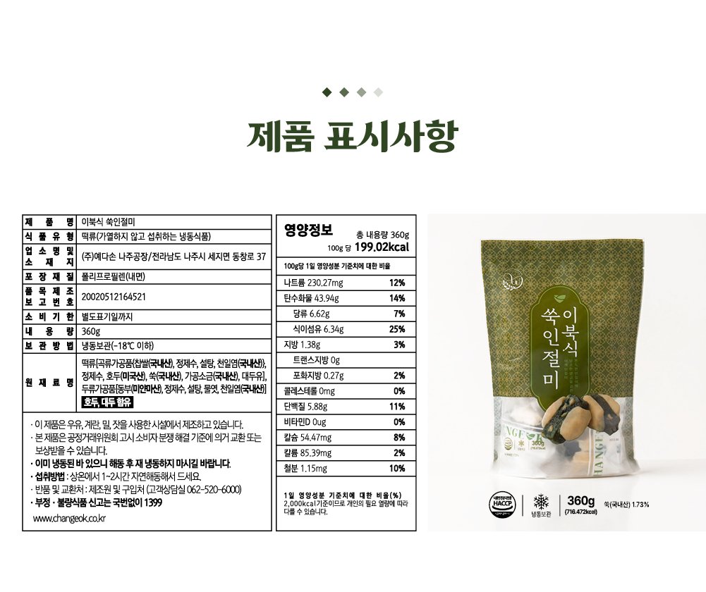 (창억떡)창억 이북식 쑥인절미 360g