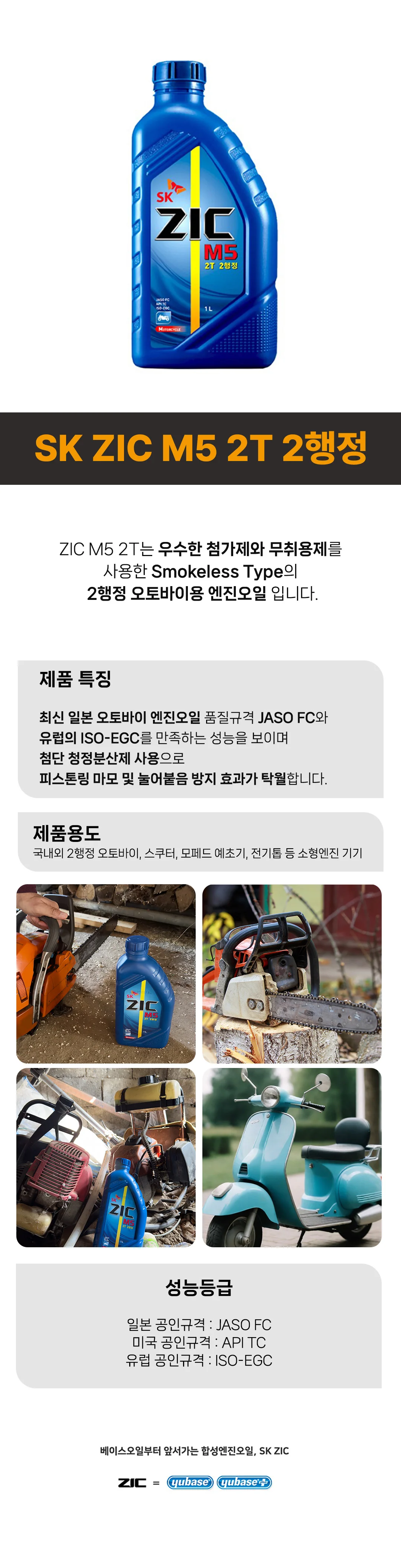SK ZIC M5 2T 지크 2행정 1Lx 2개 스쿠터 엔진오일 예초기 소형엔진 엔진톱