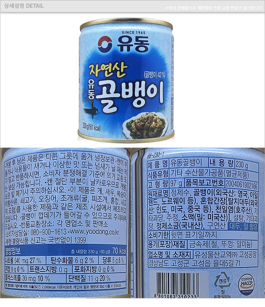 유성물산 유동 자연산 골뱅이 230g 24개 ~ 통조림 술안주 간식 캔 골뱅이무침 골뱅이통조림 골뱅이캔