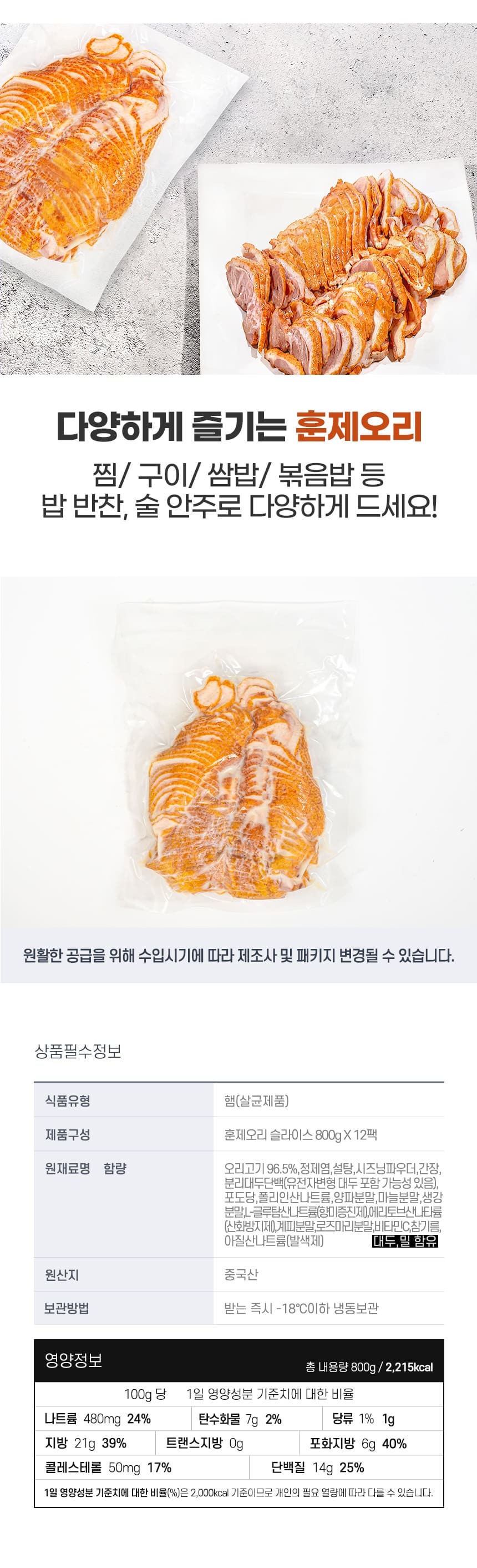 훈제오리 슬라이스 800g12팩 대용량 업소용