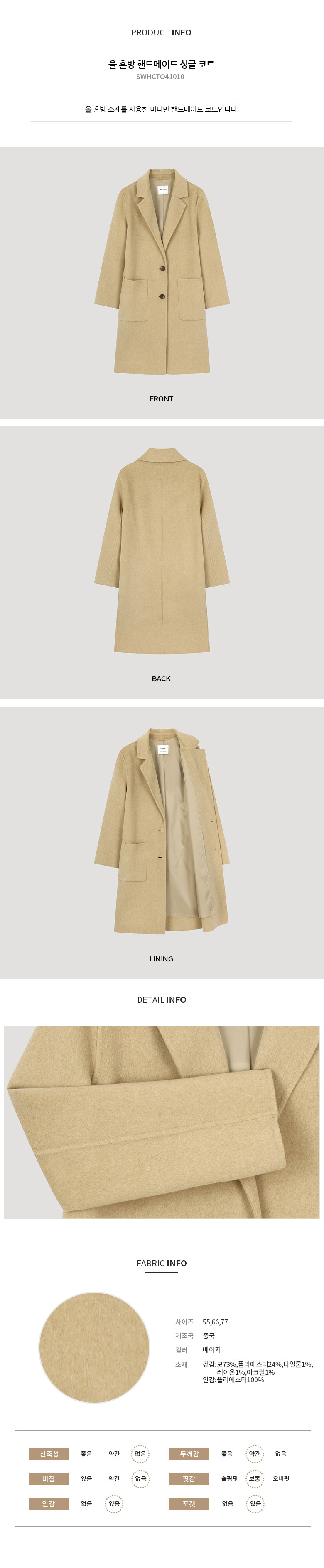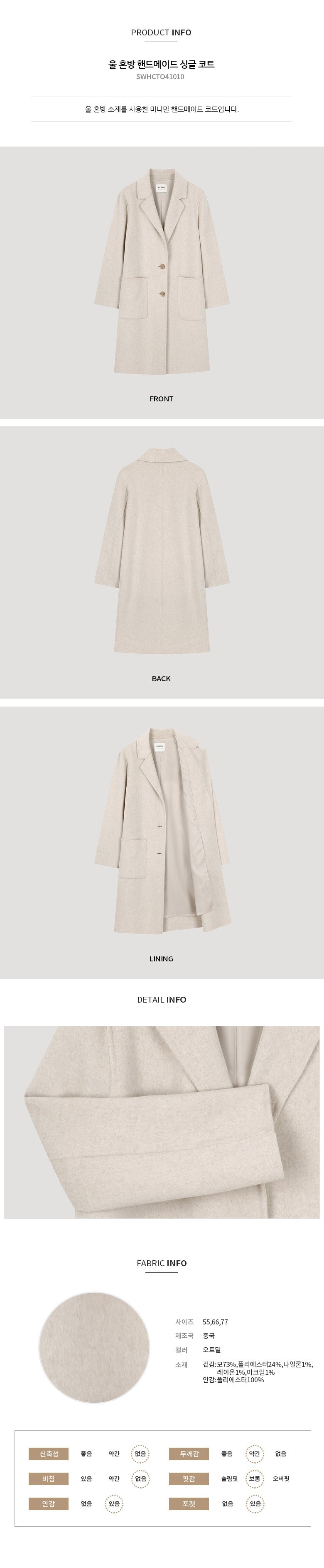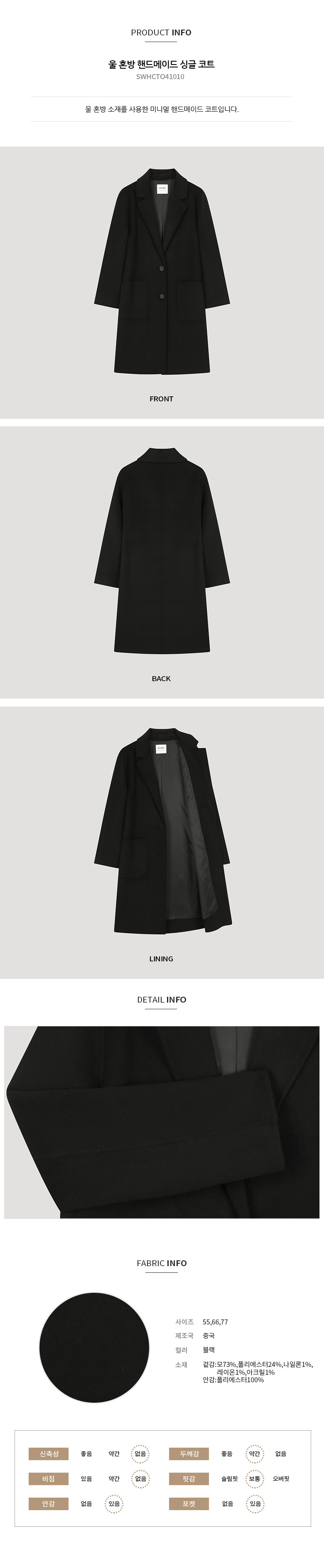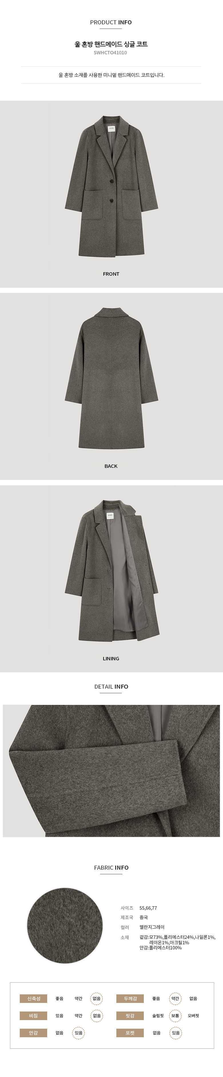 쉬즈미스 울 혼방 핸드메이드 싱글 코트 SWHCTO41010
