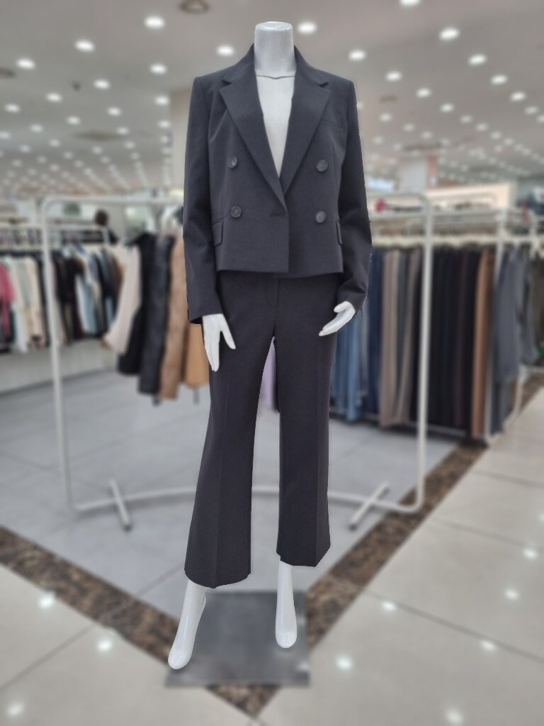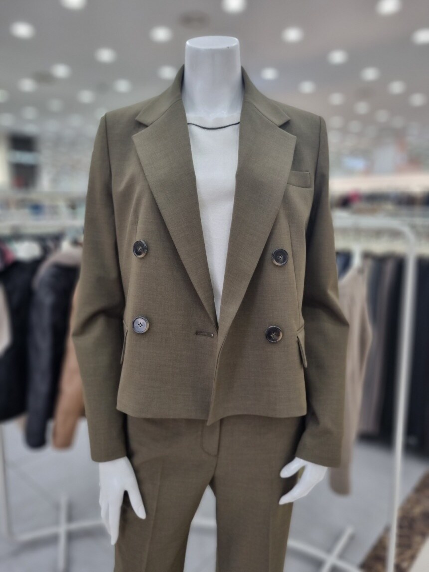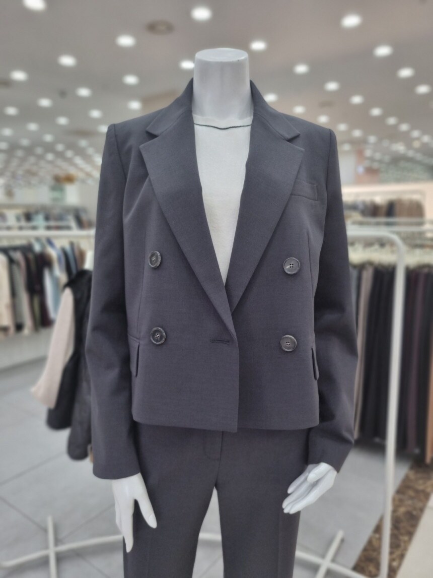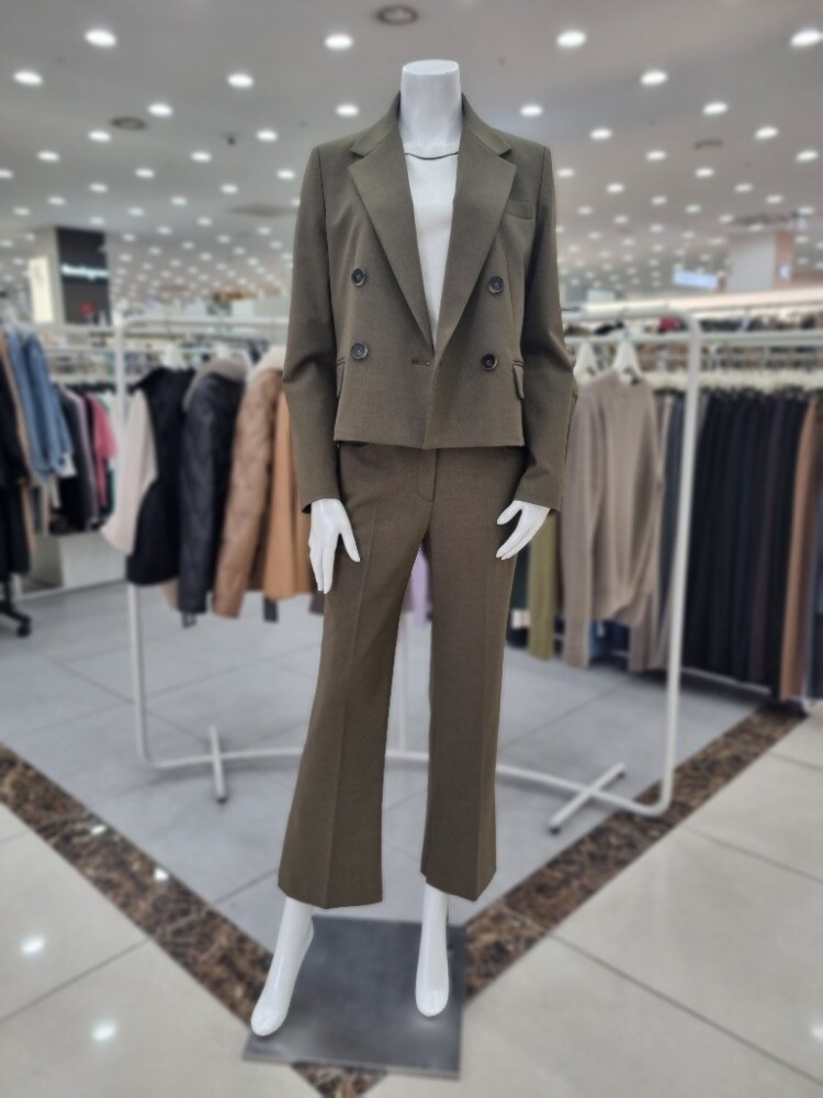 ?자켓더블 브레스트 디자인이 안정감 있는 클로징 실루엣을 연출하는 크롭 재킷입니다.양사이드 플랩 디테일이 페크 포켓을 연출?팬츠전체적인 핏이 슬림하여 레이그라인에 피팅되며 군더더기 없이 일자 실루엣이 연출되는 팬츠입니다.스판 블렌드 소재 제작되어 신축성이 있어 착용감이 편안하며 구김이 적어 부담없이 착용할 수 있습니다.