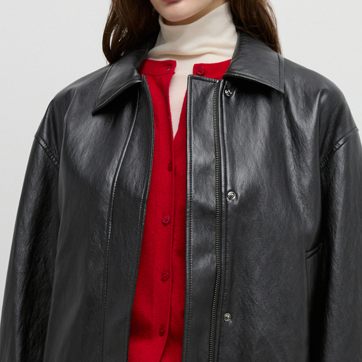 은은한 광택감이 느껴지는 레더 텍스처로 F/W 시즌 아우터로 활용하기 좋은 점퍼입니다.