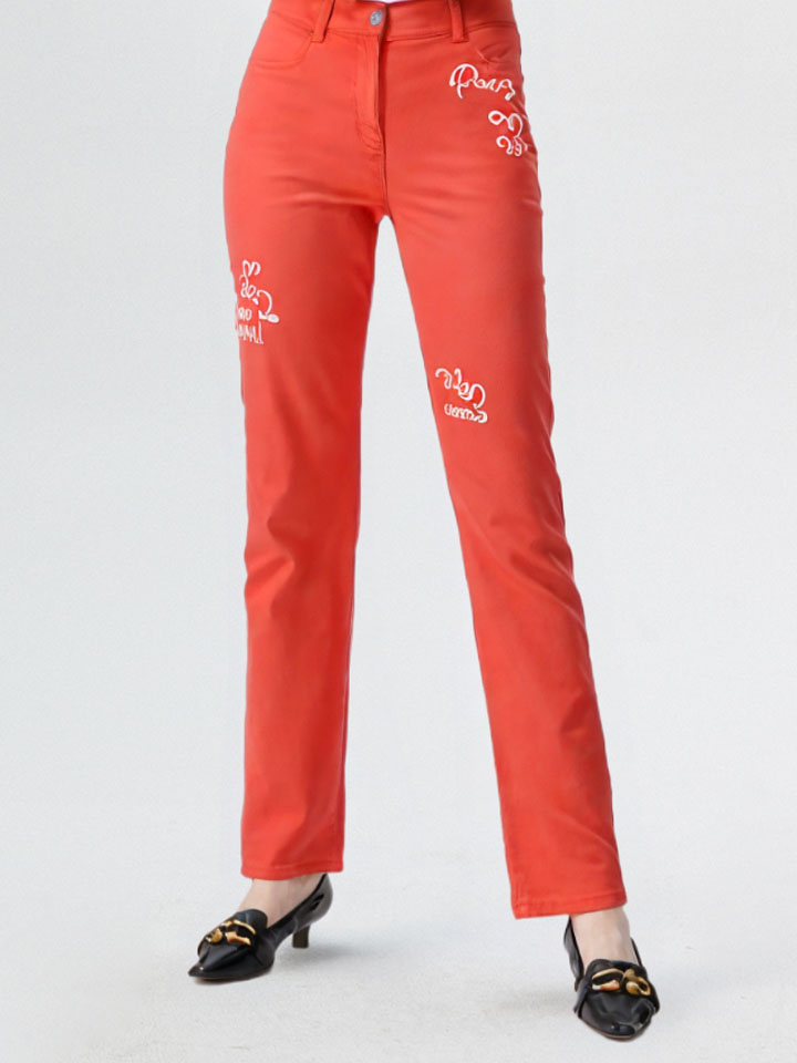 하프클럽/올리비아하슬러 코랄핑크 테이퍼드 실루엣 데님 팬츠 OHC