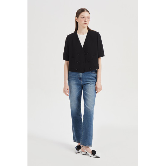 - 부담스럽지 않은 크랍 기장의 폴리 자켓.