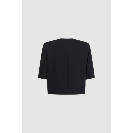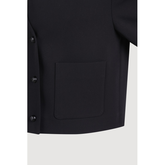 부담스럽지 않은 크랍 기장의 폴리 자켓.