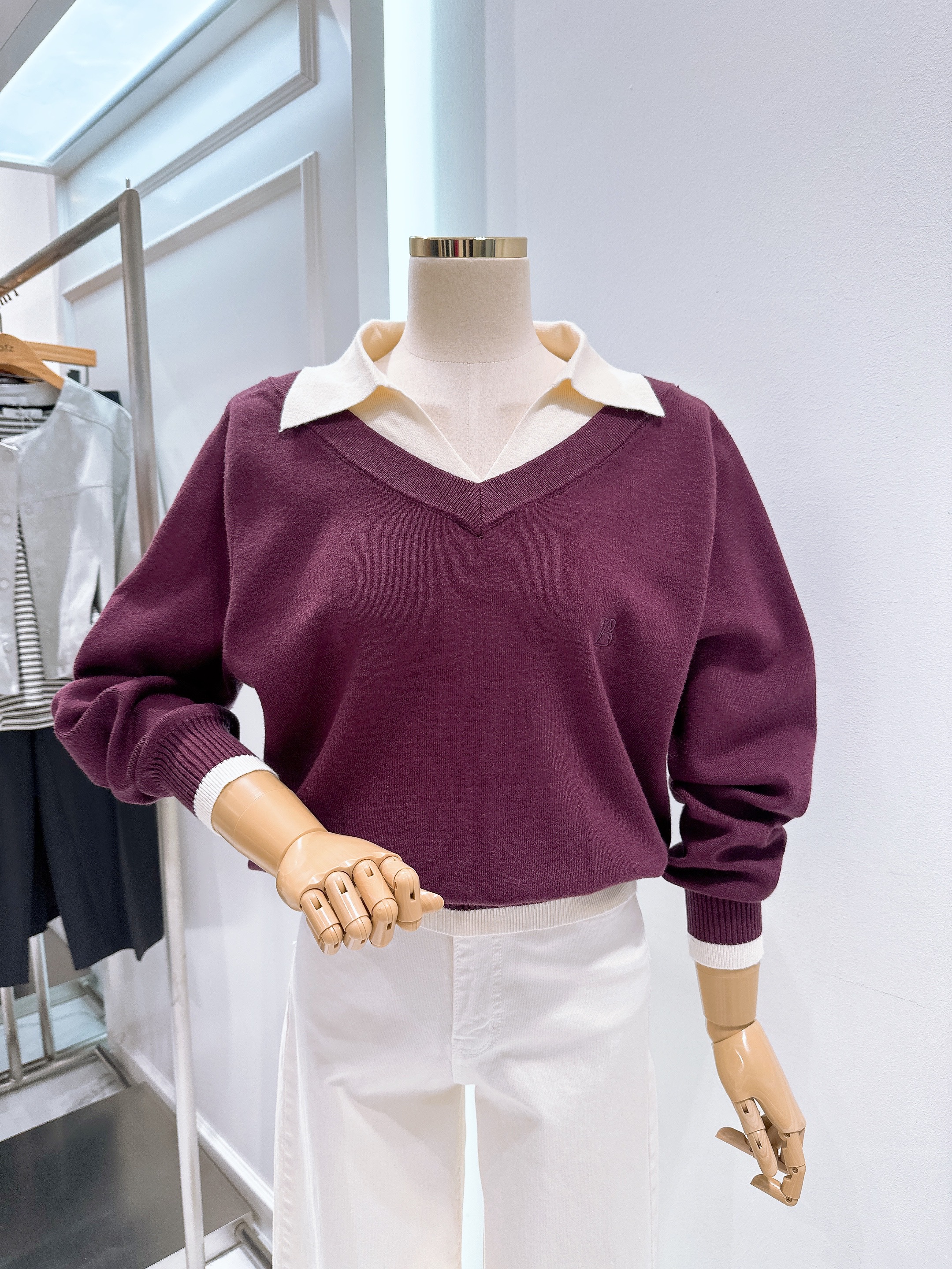 부드러운 소재감의 브이넥 카라 니트입니다.