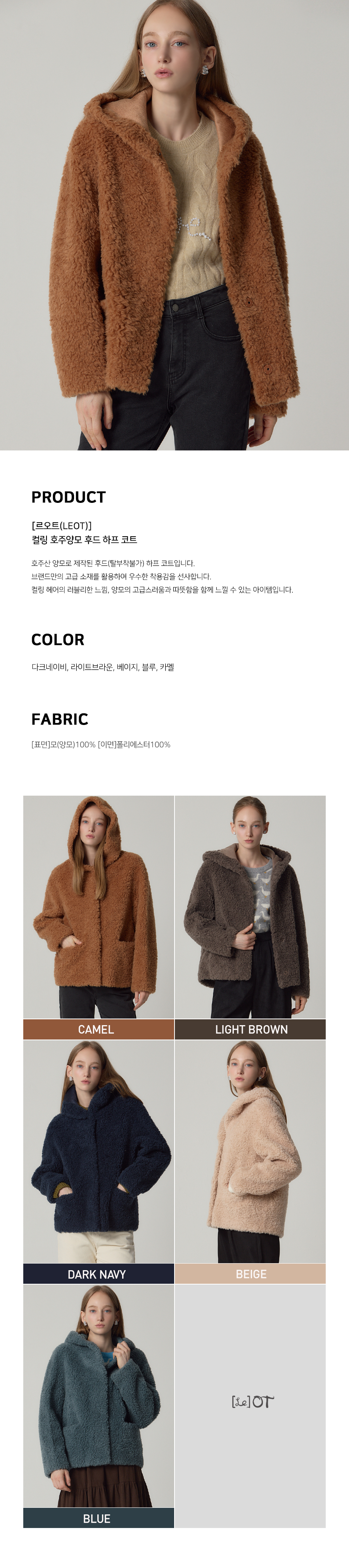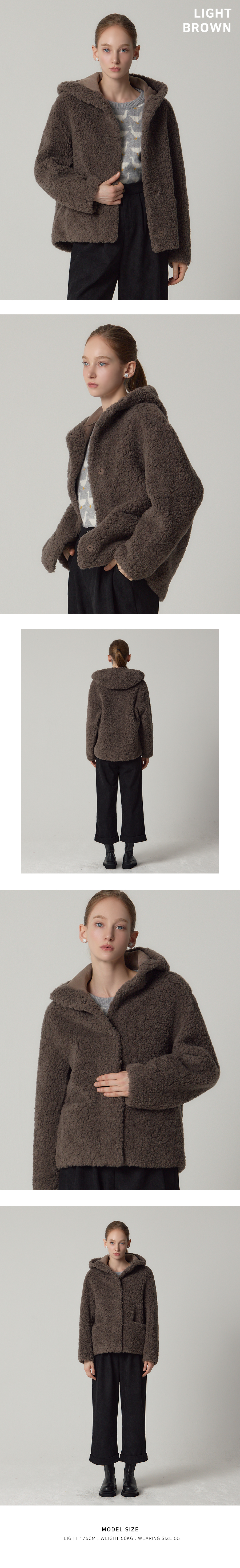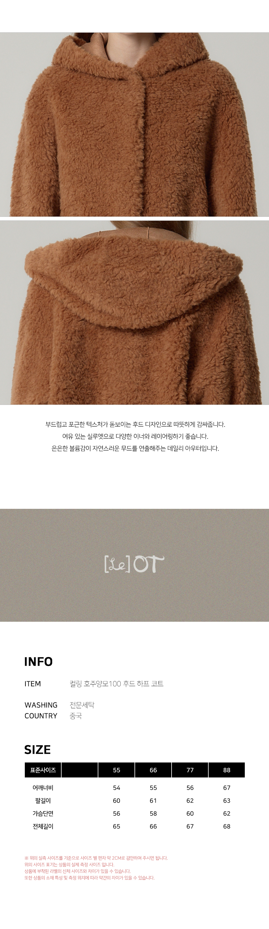 하프클럽/르오트 호주산 양모100프로 퓨어 컬리 후드 코트