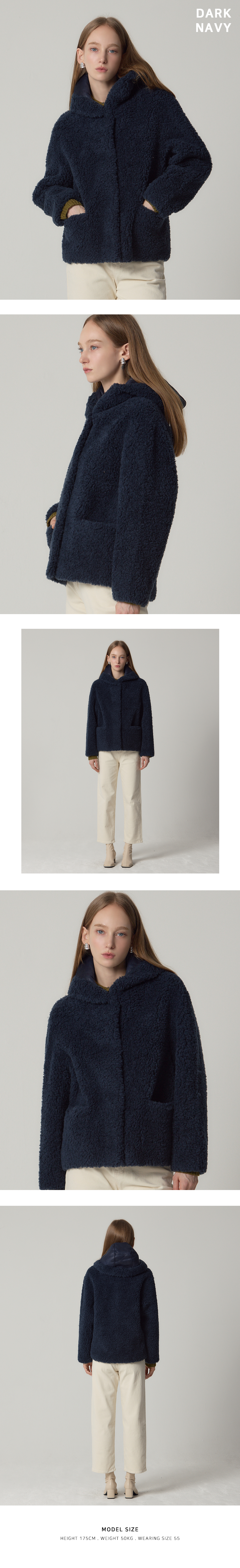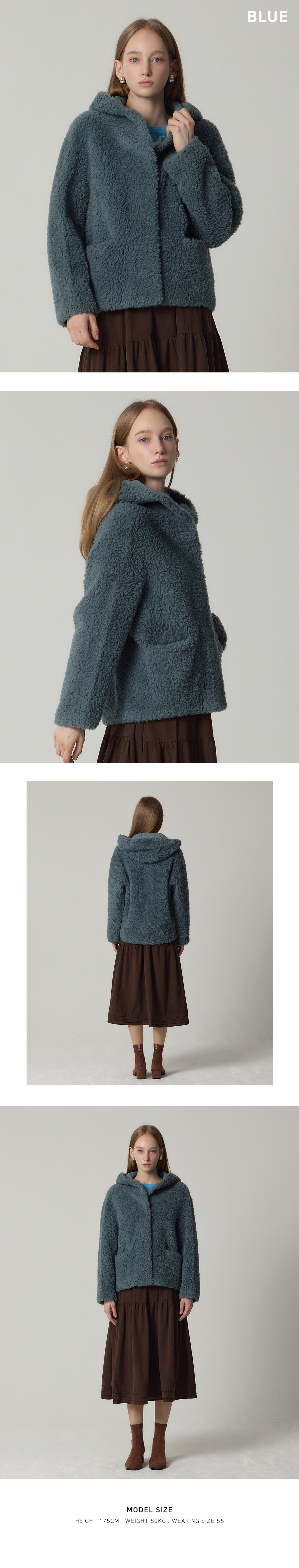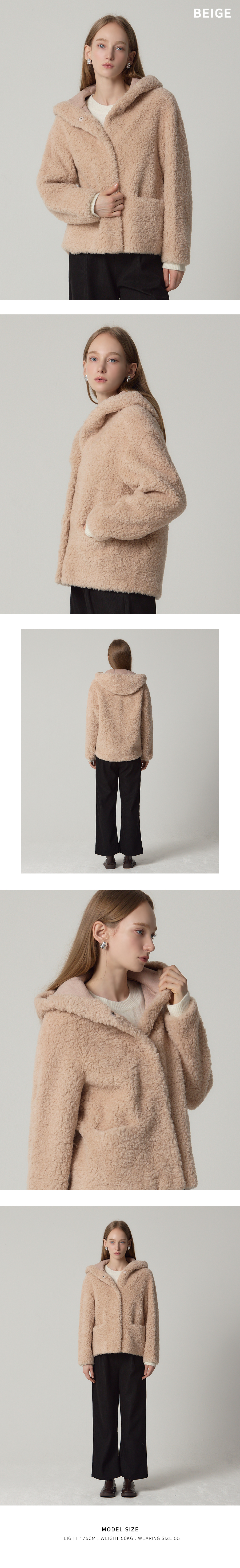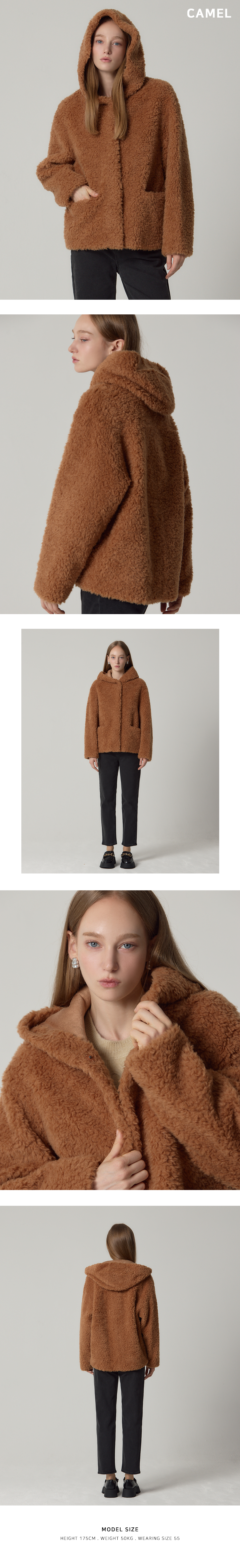 하프클럽/르오트 호주산 양모100프로 퓨어 컬리 후드 코트