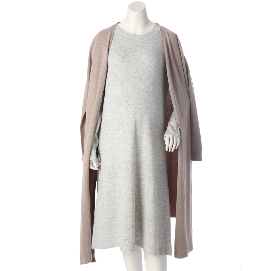은은한 멜란지 그레이 칼라의 니트 원피스로 라글랑 소매 라인이 특징인 제품입니다