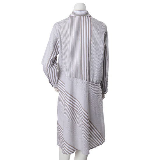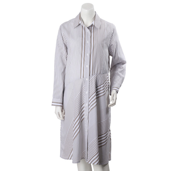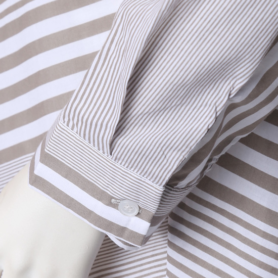 두가지 스트라이프 패턴을 믹싱하여 디자인 된 원피스 스타일의 셔츠 입니다
