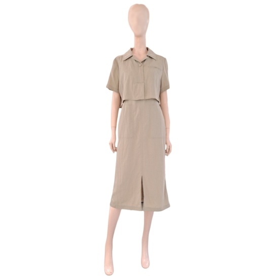 카라 포인트로 디자인된 투인원 원피스입니다.
