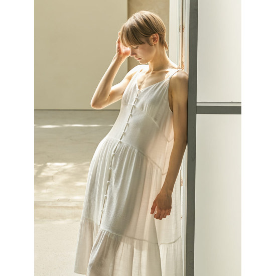 (롯데백화점)단추 포인트 슬리브리스 원피스(OW4MO542)