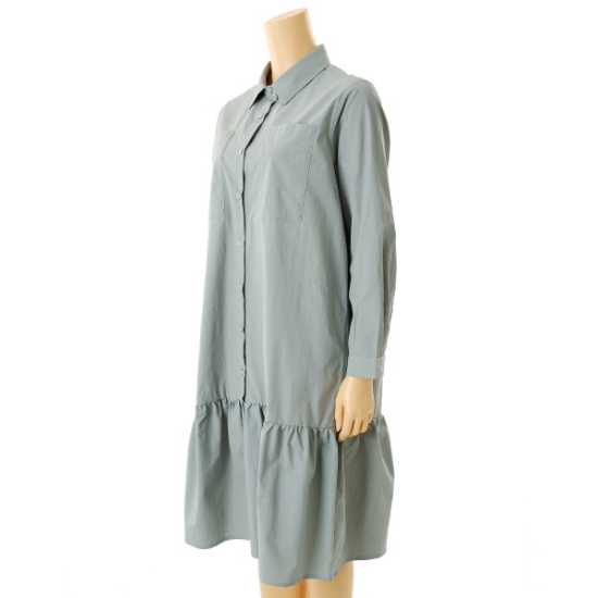 간절기용 셔츠형 원피스로 오피스용이나 캐주얼하게 착 용할 수 있는 기본 스타일의 제품입니다