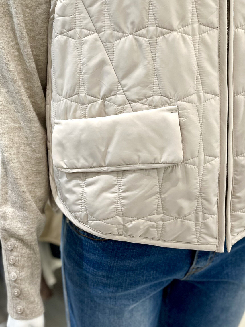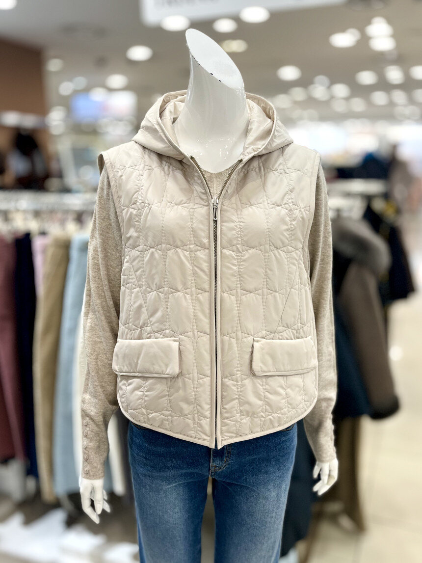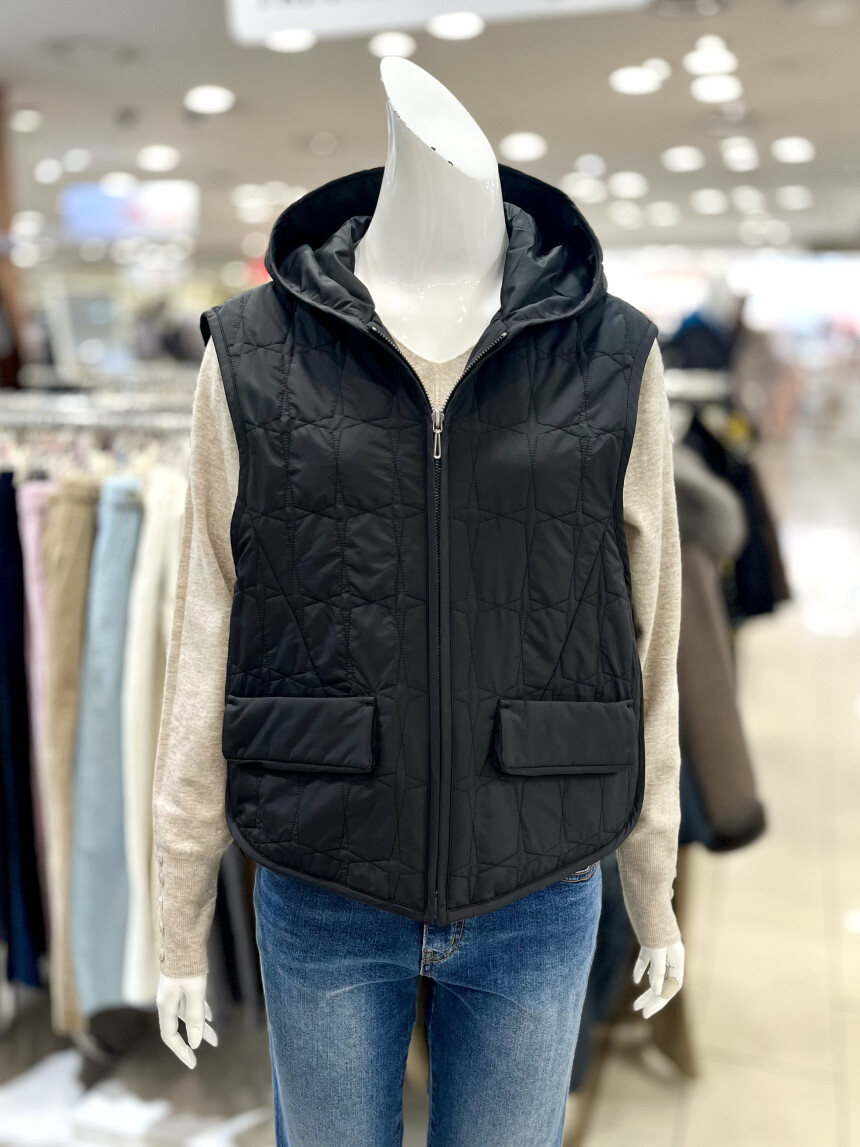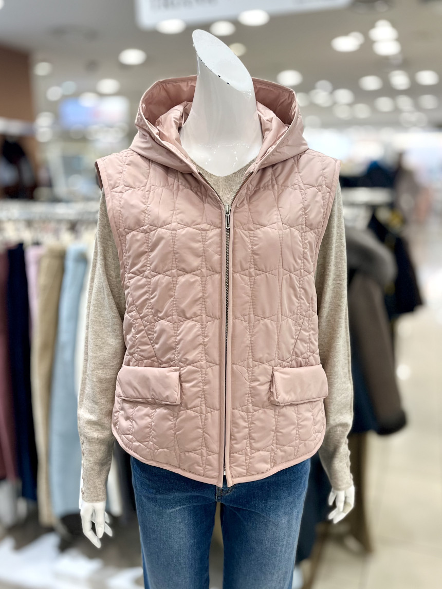 경량 폴리 누빔으로 포근한 패딩 조끼입니다.