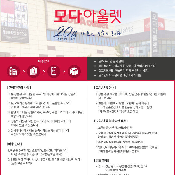 반품 주소   경남 진주시 정촌면 삼일로95번길 46 모다아울렛 2층 아르떼
