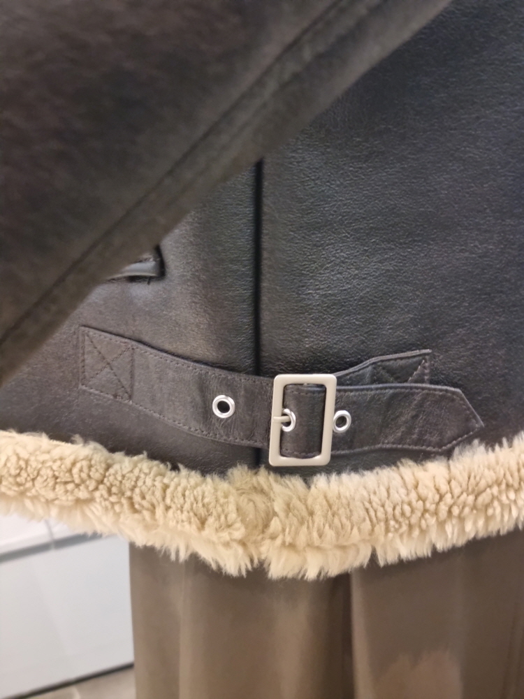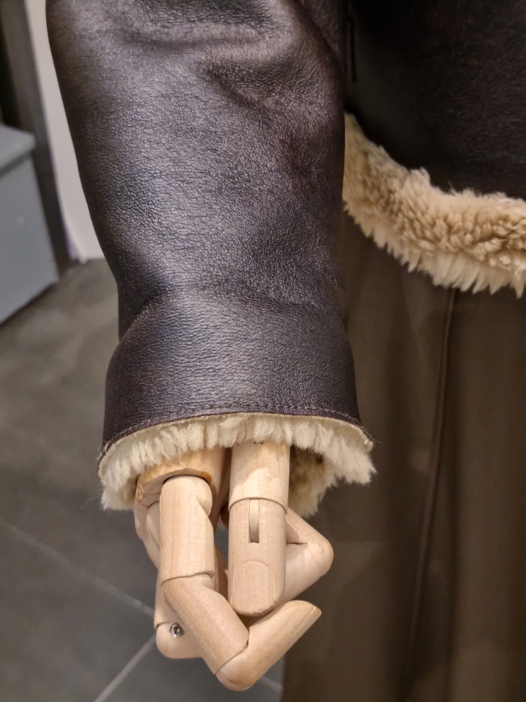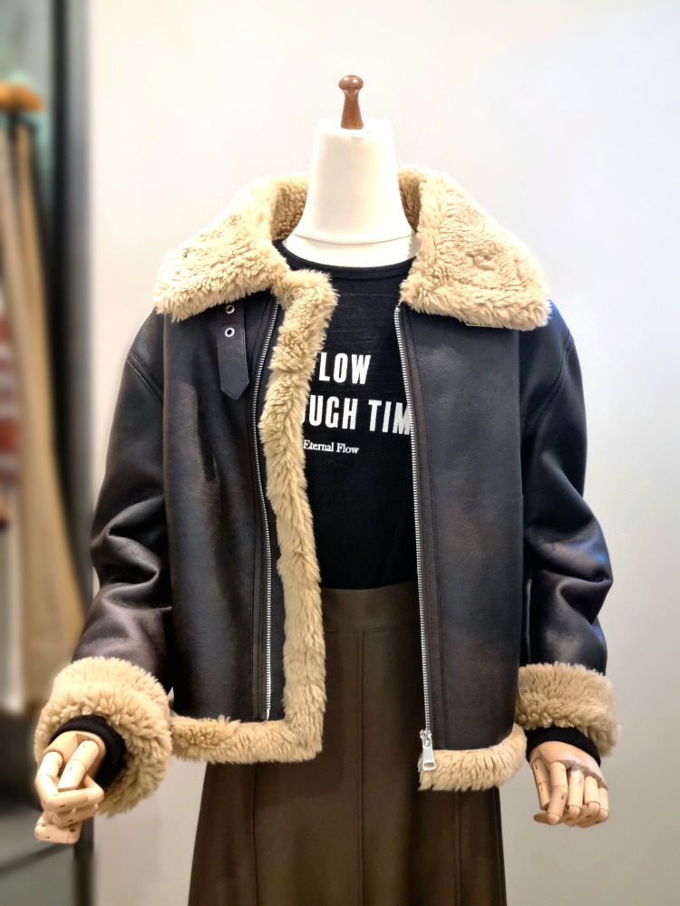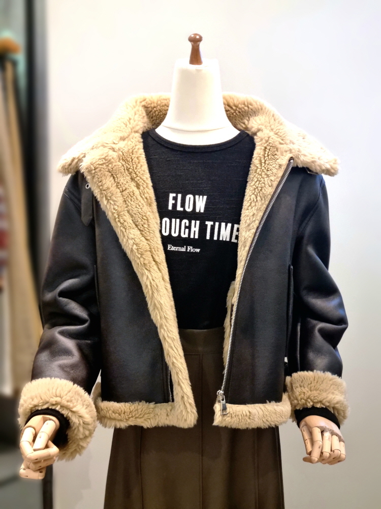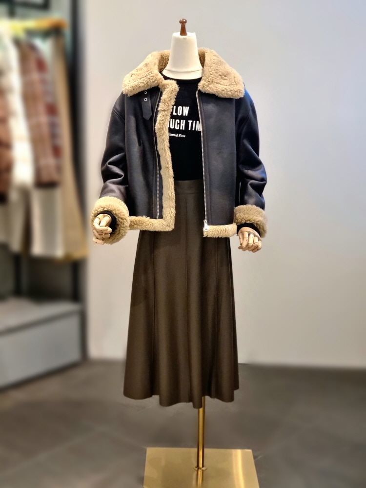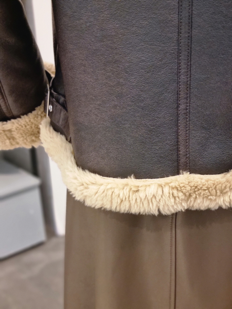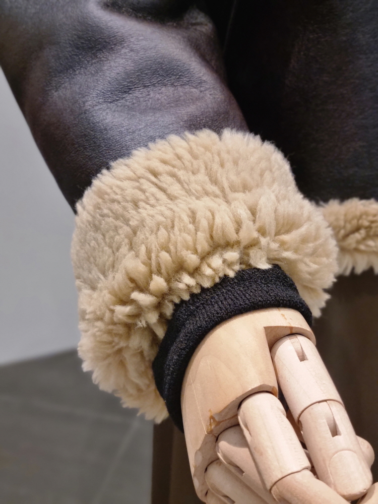 카라넥 네크라인과 허리밑단 소매끝단이 포인트로 양털로 되어있어서 고급스러워요