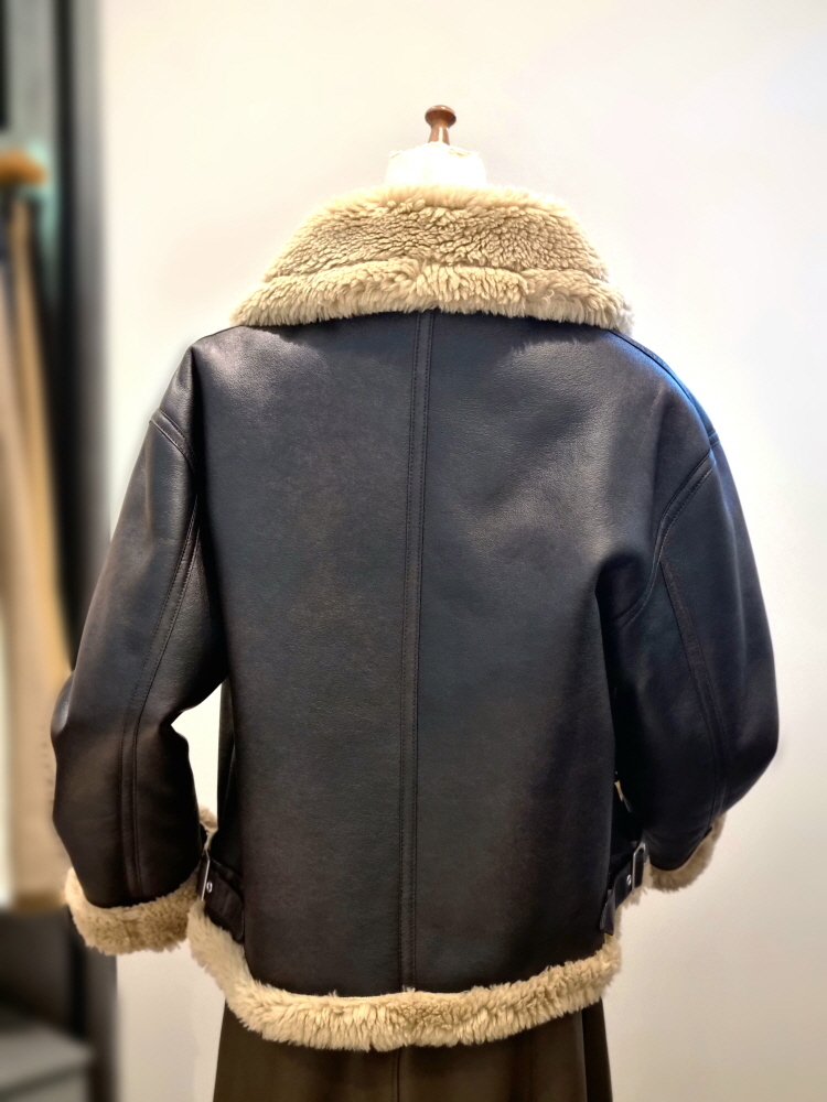 브라운 색상의 멋스럽고 세련된 무스탕 가죽 자켓 입니다.